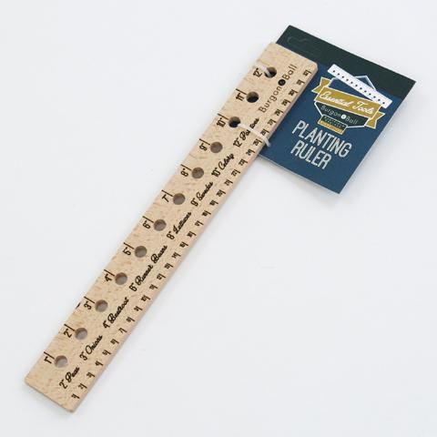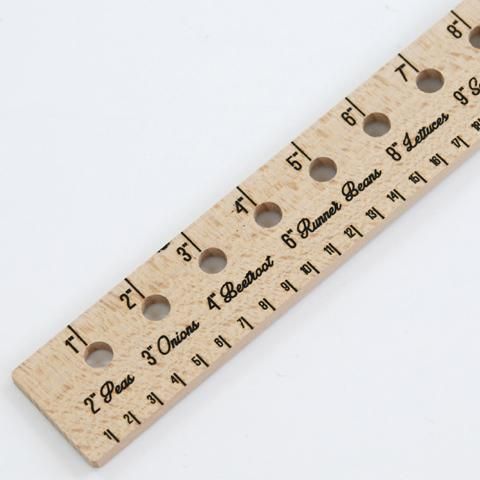 種を蒔く時に便利な33センチ定規。主要な植物の植え付け間隔ガイド付き。FSC(森林認証制度)認可のビーチ材。