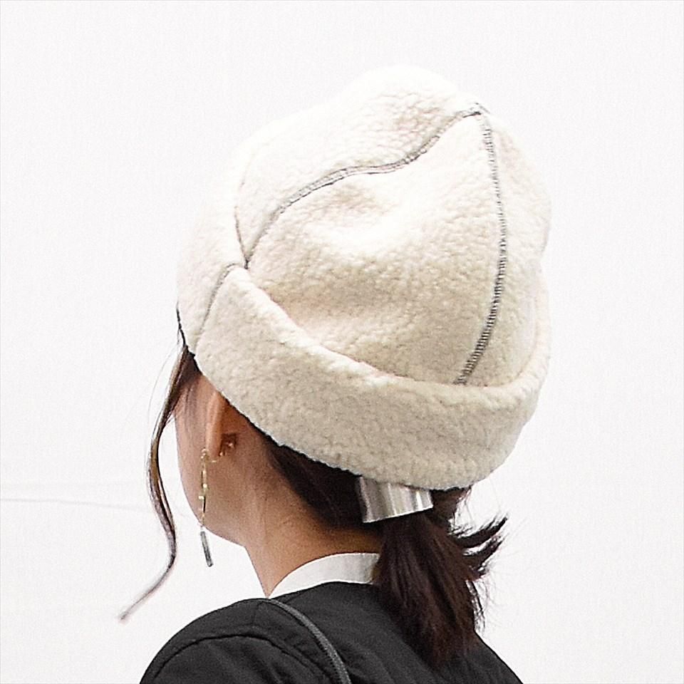 DECHOの冬の人気アイテムといえば、このレトロボアキャップ。ふんわり深めのシルエットに、くるっと折り返したボリュームたっぷりのボアがポイント。折り返しは幅を調整できるので、顔のサイズや骨格を気にせずバランスよくかぶれます。小顔効果もあって、ぐっと可愛い印象に。