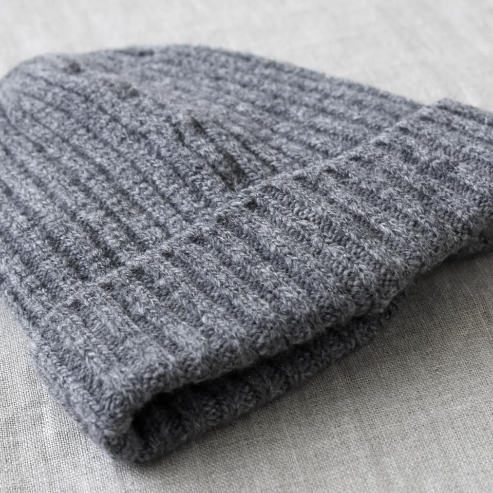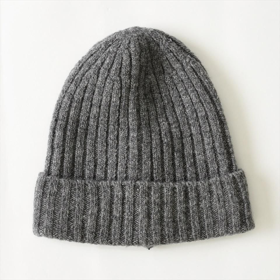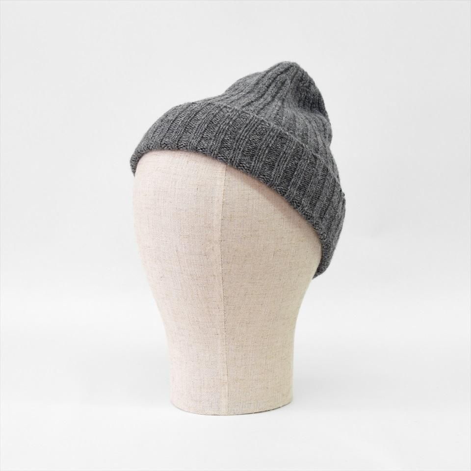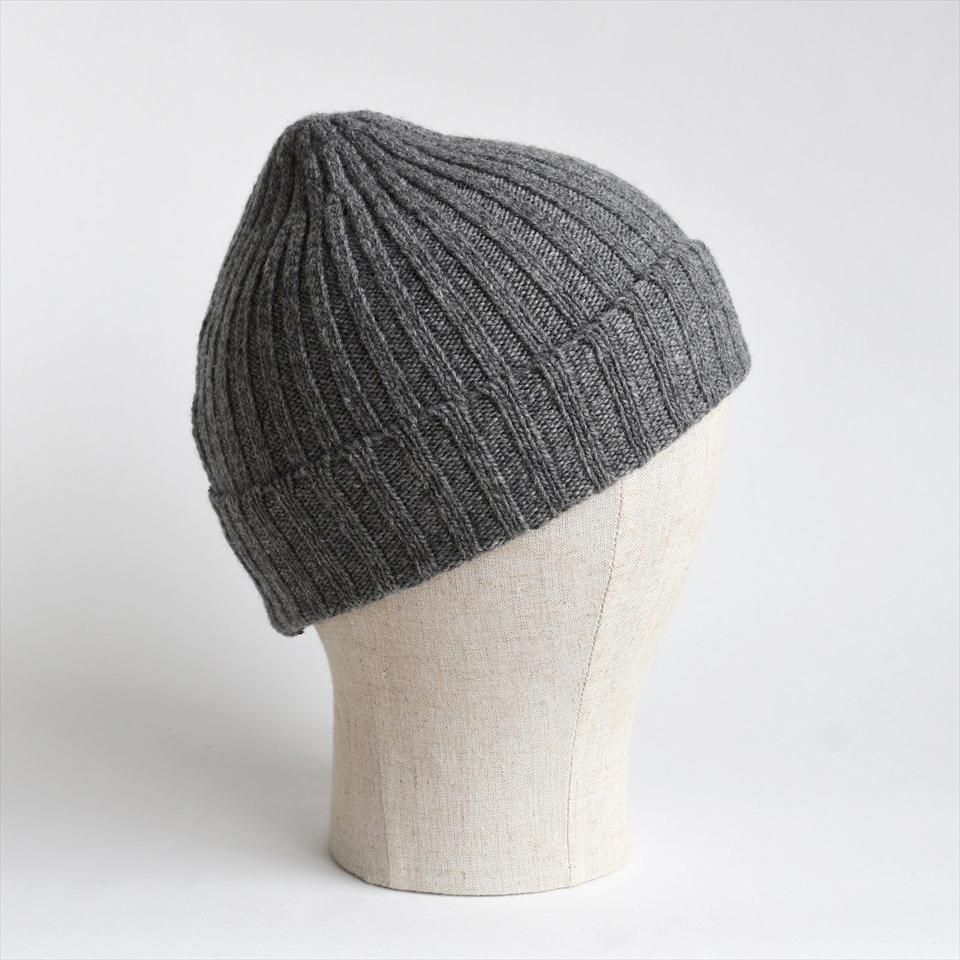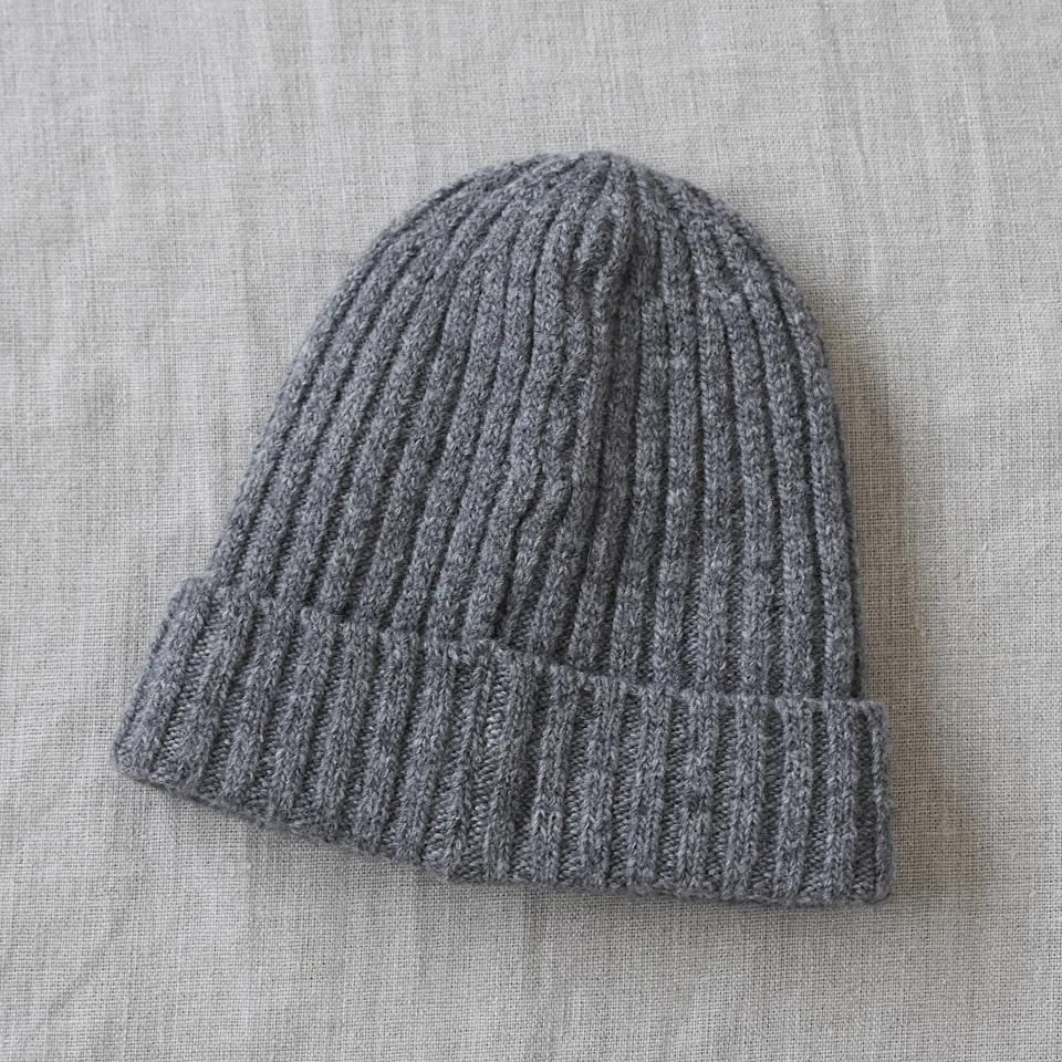 ウール糸で編み立てたニットキャップ。ボリュームを抑えた深すぎないかぶり心地で、いろいろなスタイルで使いまわしがききます。眉毛の上と後頭部まで深くかぶると耳まで覆い隠せて暖かく、生え際あたりから浅めに被ると頭頂部に遊びができて、愛らしい雰囲気に。シンプルでベーシックなリブ編みニット帽です。