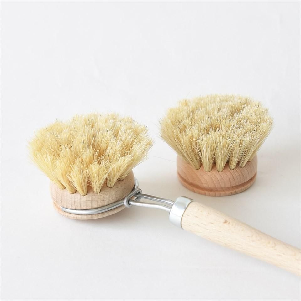 毎日のお皿洗いに便利なキッチンディッシュブラシの取り替え交換用ヘッドブラシ。取り外し式のヘッドブラシは交換ができます(別売り)。天然素材で握り心地も良くやさしい風合いが魅力です。