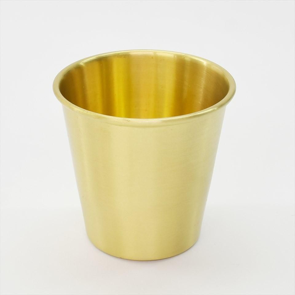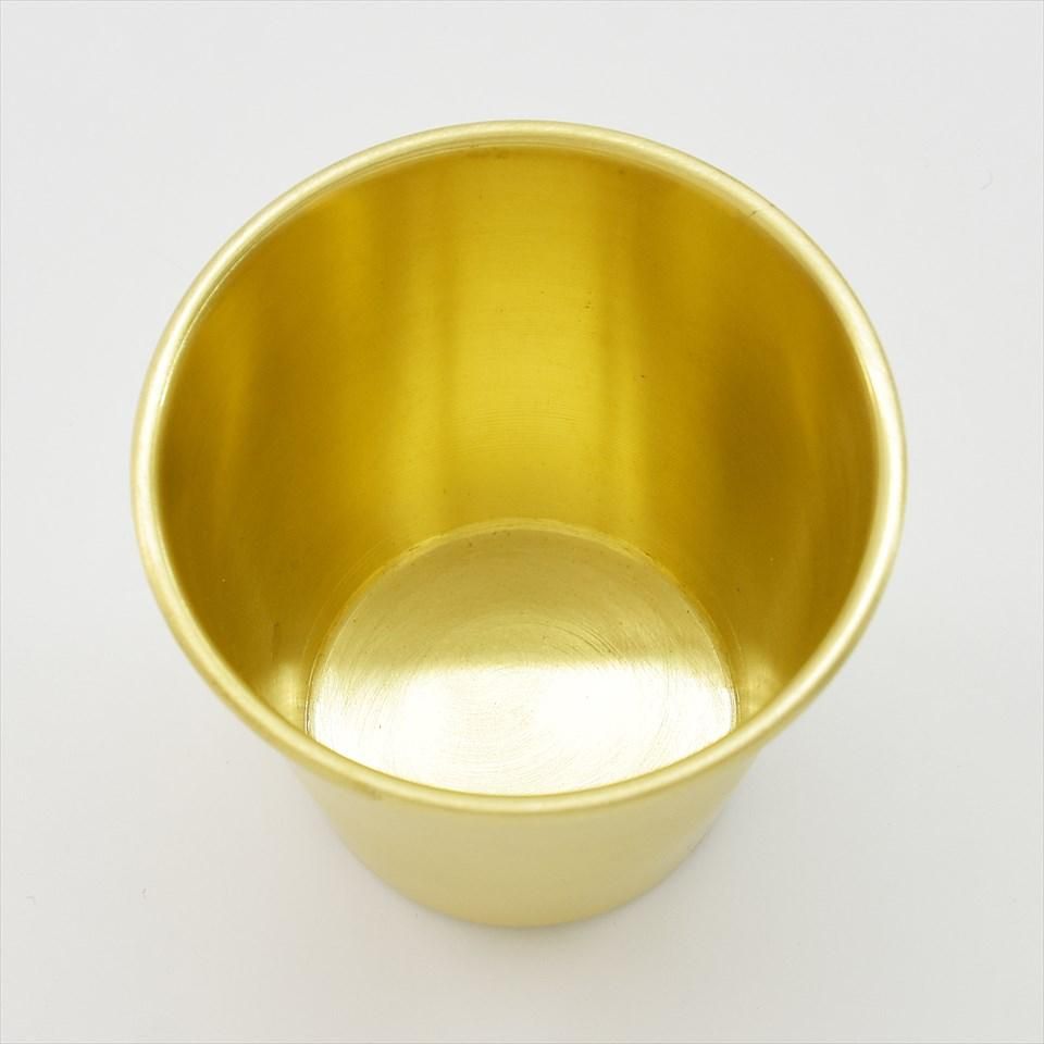 インド製の真鍮カップ。防水加工が施されているので、毎日の歯磨きコップに使ったり、お花を活けたりも可能です。小ぶりなので小物の収納にも便利なサイズです。