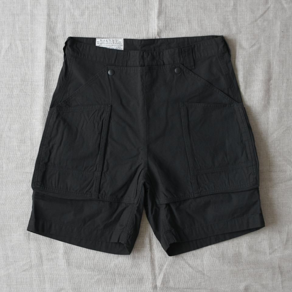 道具箱のように機能するパンツとして制作し続けているブランド定番型 toolbox shorts。アトリエで作業するアーティストたち「59 rivoli squater」の一連のライフワークにフォーカスしたショートパンツ。