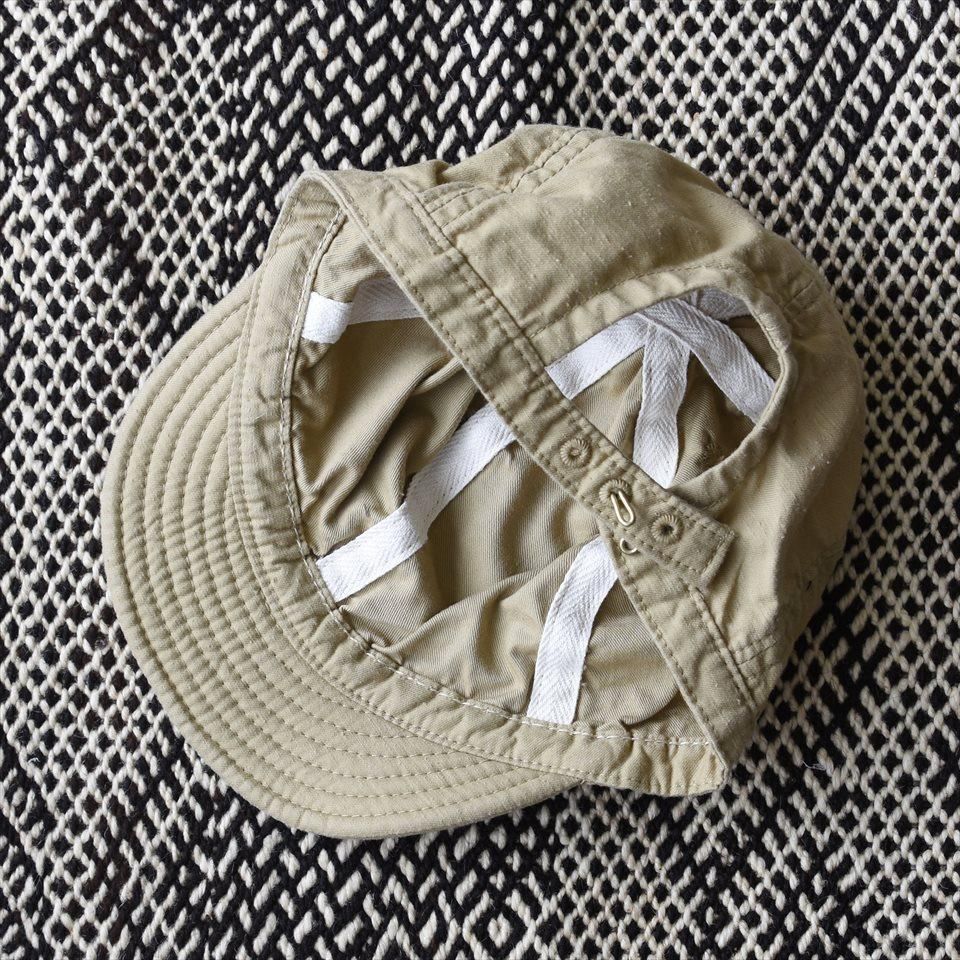 経年変化が素晴らしいネップバックツイルを採用。炎天下や汗まみれの作業での酷使と繰り返しを想定しクラシックなワークウエアのような縫製で仕立てています。独特なシワ/ムラ感や、ネップ(糸埃)によるヴィンテージ感溢れる帽子に仕上がっています。カラー表記の「コヨーテ」は、黄色みのあるベージュのような色味です。