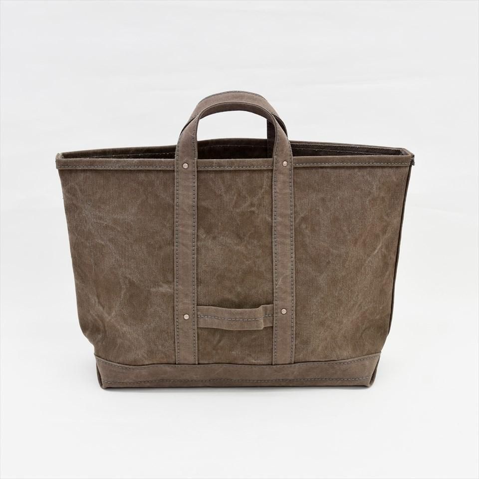 昔ながらの旧型のシャトル織機により時間をかけて高密度に織り上げられた帆布を、植物の渋(タンニン)で染めています。TOOL TOTEのマスタードとブラウンの2 色はこの「タンニン染め帆布」を使用しています。タンニンには防水・防腐・耐久性強化等の効果と共に「酸化」する特性があり、この特性が生地に変化をもたらします。 紫外線や湿度の影響で酸化し、自然に色に深みが増していきますので、使い込むことで革や木と同じように、より味わい深く変化して使い手の個性が出てきます。 ぜひ、その経年変化をお楽しみください。