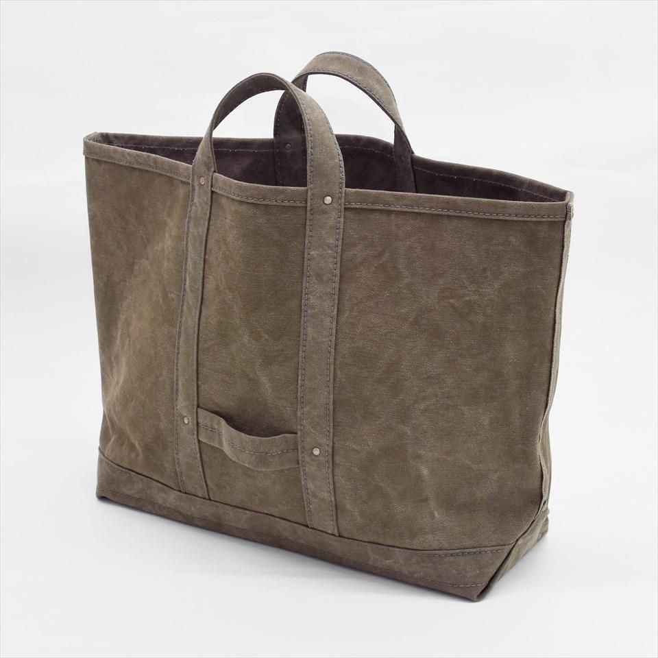 昔ながらの旧型のシャトル織機により時間をかけて高密度に織り上げられた帆布を、植物の渋(タンニン)で染めています。TOOL TOTEのマスタードとブラウンの2 色はこの「タンニン染め帆布」を使用しています。タンニンには防水・防腐・耐久性強化等の効果と共に「酸化」する特性があり、この特性が生地に変化をもたらします。 紫外線や湿度の影響で酸化し、自然に色に深みが増していきますので、使い込むことで革や木と同じように、より味わい深く変化して使い手の個性が出てきます。 ぜひ、その経年変化をお楽しみください。