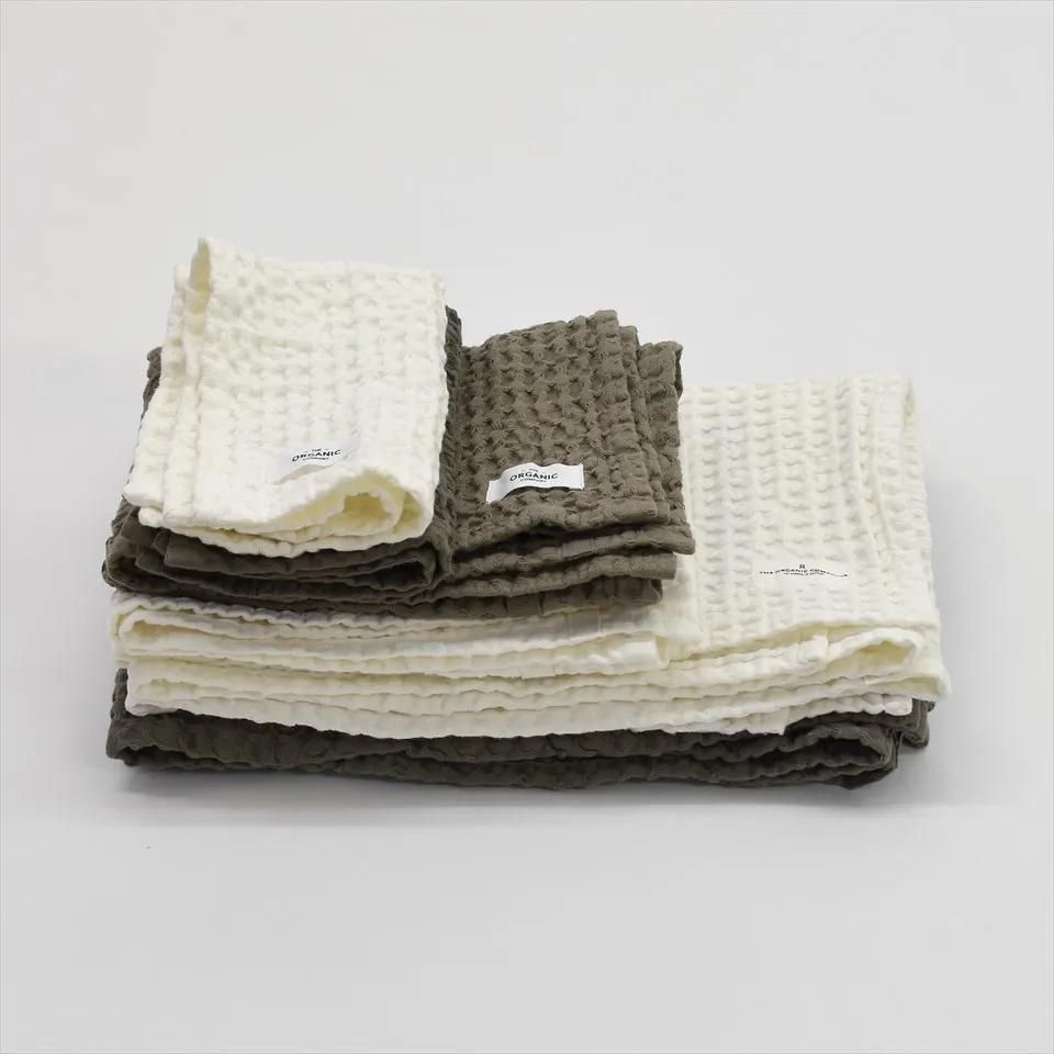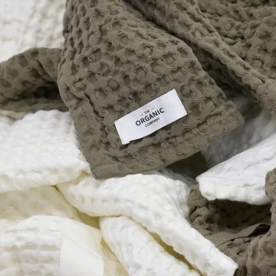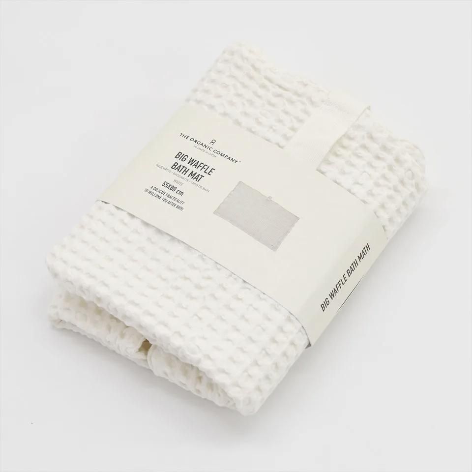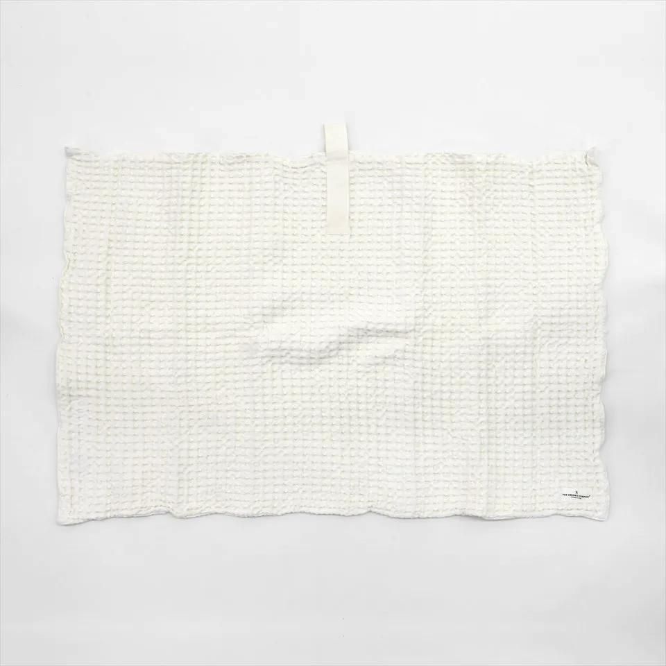大きめサイズのバスマット。お子様と一緒の入浴後も二人揃って乗れるサイズで、同ブランドのワフルタオルを二重にした厚み。二つ折りにすれば、さらにふっくら感が増す気持ち良さです。また、手軽に洗濯ができるので、毎日きれいなバスマットを使いたい方へおすすめです。コットンならではの吸水性の良さで、気持ちよく使用できます。吊るせるストラップ付きで、使用後に吊るしておけば乾きも早く衛生的。オーガニックカンパニーのワッフルシリーズの入門編として選ばれる方が多いのも納得です。オーガニックコットンの安心さは、贈り物にもおすすめです。