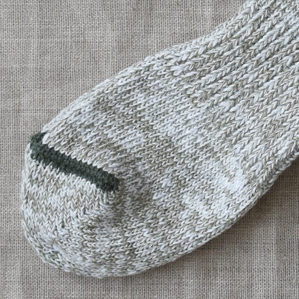 太めの糸で編み込まれた肉厚の生地はとても丈夫で蒸れにくく、締めつけすぎずズレにくいので長時間履いていても疲れにくい靴下です。土踏まずはリブ編みでフィット感があって履き心地抜群です。ブーツやスニーカー、サンダルなど靴を選ばず合わせやすいデザインです。耐久性がり履き心地も良く、アウトドアや作業用靴下としても最適な靴下です。