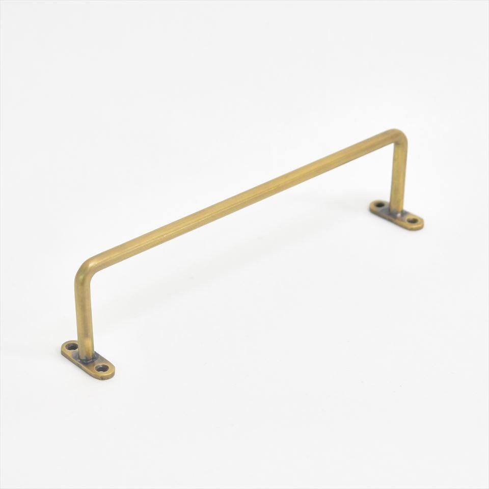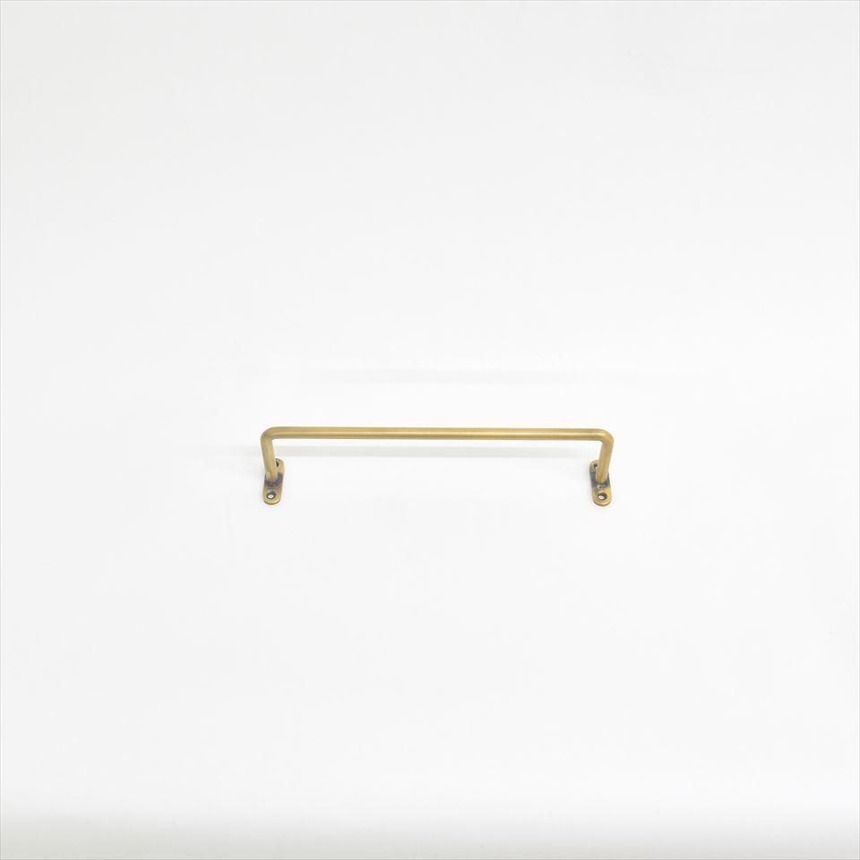 インド製のタオルハンガー。真鍮のマイナスビス4本付き。真鍮製は経年変化に富み、ビンテージの風合いを楽しみたい人におすすめです。真鍮は空気中の成分や皮脂と反応して変色してきます。五円玉の感じです。経年変色は真鍮の魅力ではありますが、ピカピカを好まれる場合は、使用後に柔らかい布で汗や汚れを拭き取ってから保管してください。くすみが気になる場合は、重曹で磨くと綺麗になります。