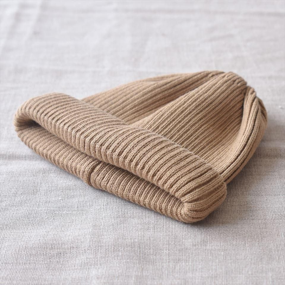 西欧で見かけることが多い、頭に沿ってかぶれるスタイルの浅めのロールニットキャップ。ロールアップ具合で深さのアレンジが可能。膨らみを抑えた糸と網みなので、頭に沿うように小ぶりに着用できます。綿100%ですが、擬麻加工(麻のような質感を出す加工)を施し、麻のようなハリ感とサラサラとした肌触りのニットキャップです。オールシーズン対応。コアフェオレやモカのような色味のベージュ。