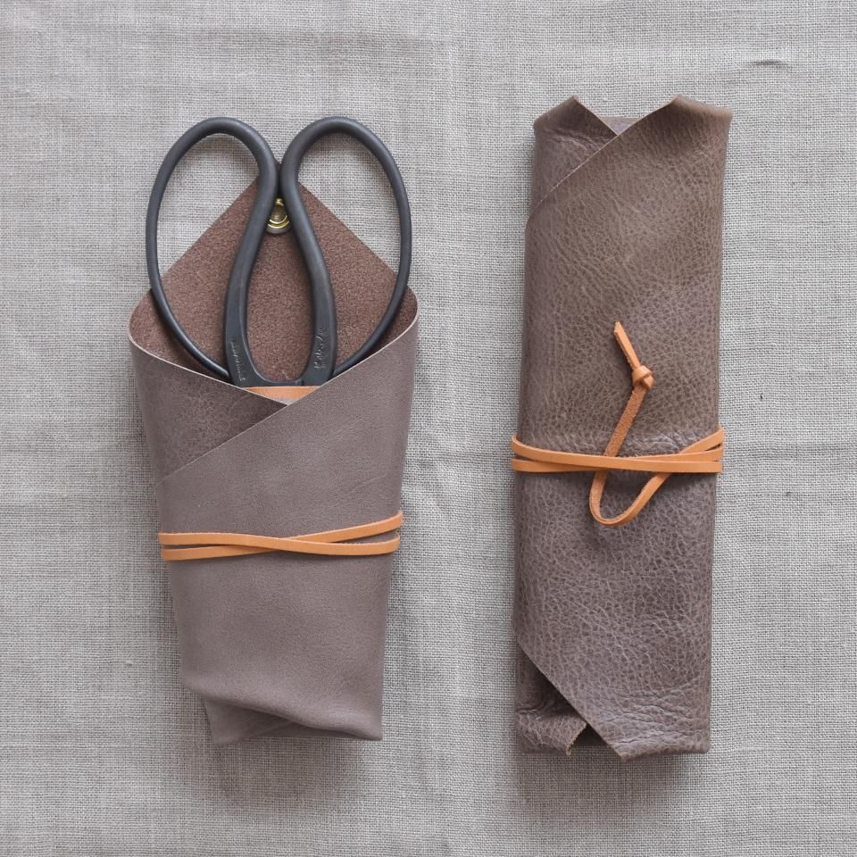 「包んで運ぶ、結んで贈る」シザーケース。お花の教室へ行くときに花鋏を鞄に忍ばせたり、大切な人に鋏を贈るときに、包んで結ぶロールケースです。日本では古くから伝統的に伝わる「包む」「結ぶ」の本質、ものを大切にし相手を尊重する意を表す所作を、鋏ケースとしてカタチにしました。風呂敷のように包むほか、鋏の出し入れが可能なシザーケースの2WAYでお使いいただけます。京都御所南の革工房Rimとのコラボレート制作。(※)Rimでの販売ございませんのでご注意ください。