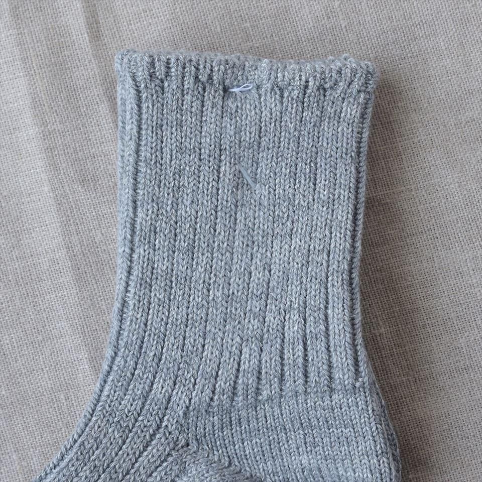 コットン/ヘンプ/アクリルの混合の太めの糸で編み込まれたリブソックス。丈夫で蒸れにくく、締めつけすぎずズレにくいので長時間履いていても疲れにくい靴下。ネップ(糸のかたまり)がなく綺麗めの印象のシンプルな靴下なので、どんな靴にも合わせやすいです。長く履いても穴が開きにくい耐久性があり、アウトドアや作業用靴下として最適。オールシーズン対応の履き心地も良い靴下です。