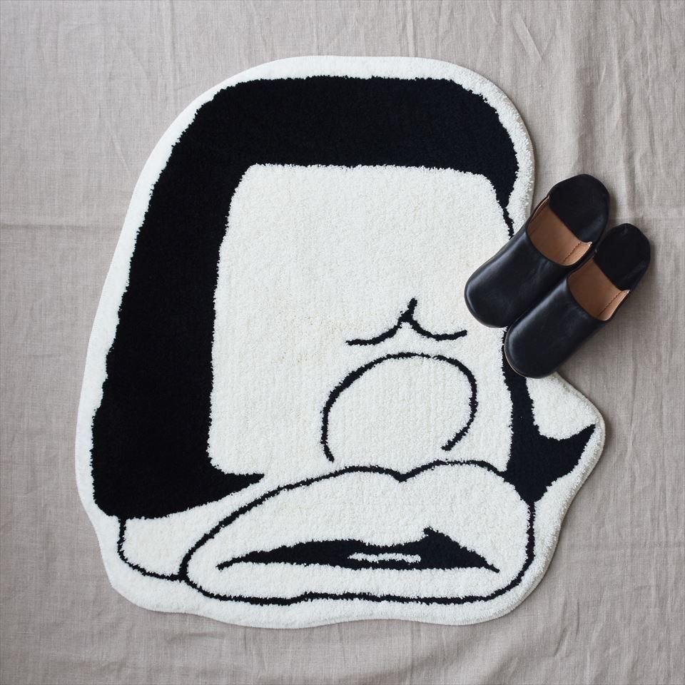 Tacoma Fuji RecordsとPacifica Collectivesとのコラボレートで制作された、画家・五木田智央氏の名作「SIGH」のアートラグ。ウールではなくアクリルなので、オールシーズン季節を問わずお使いいただけます。縦横80センチ程度のサイズは、シングルのラグマットとしてのほか、欧米のインテリアのように壁掛けでアートピースとしてもお勧めです。
