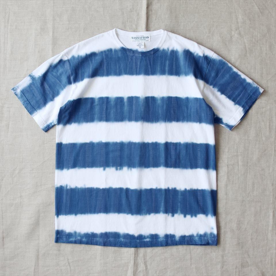 【残りMサイズのみ】かご染めのボーダーTシャツ。首回りも伸びにくく、縮みも少ないタフで肌触り良いTシャツ。