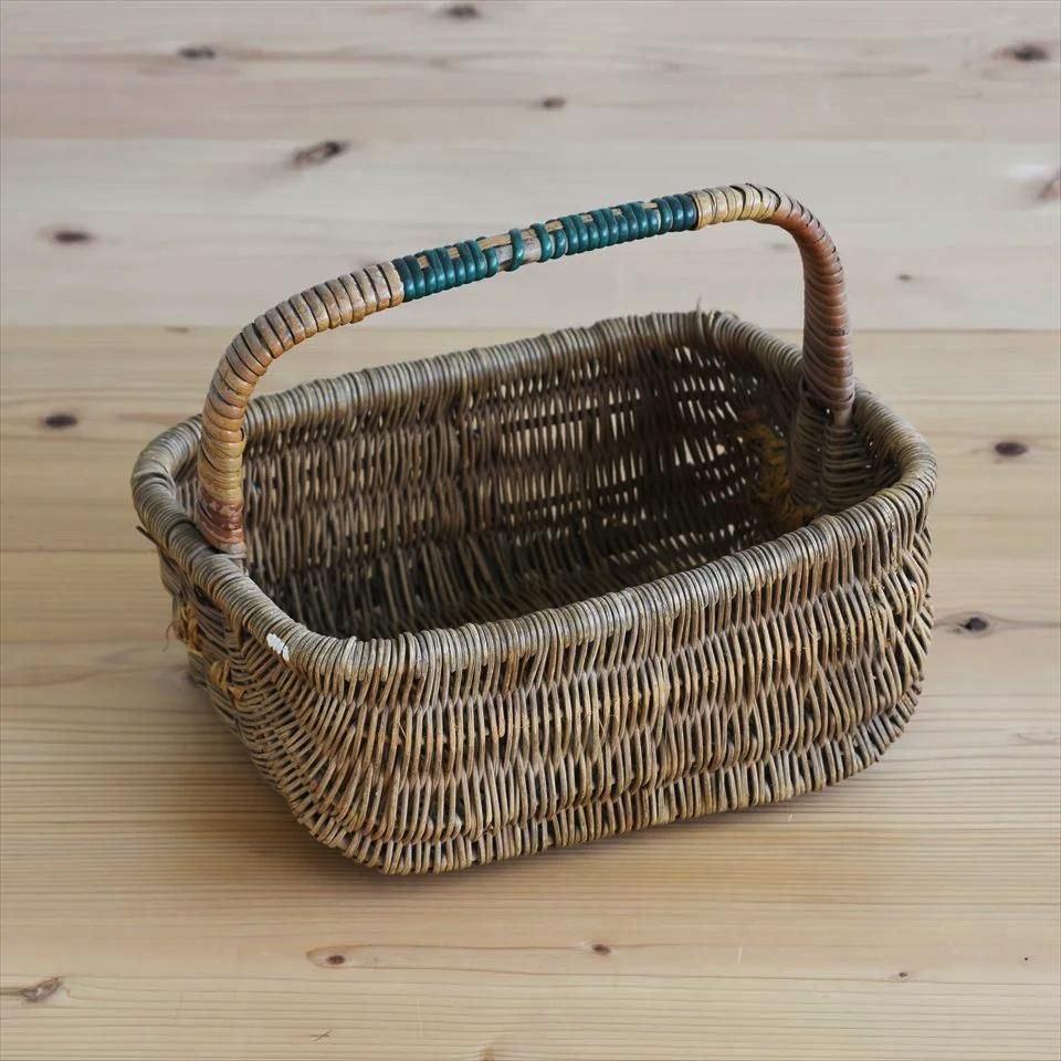 イギリスで使われていたウィローバスケット。皮付きの柳の枝を編み上げたバスケット。天然木の自然のままの風合い。