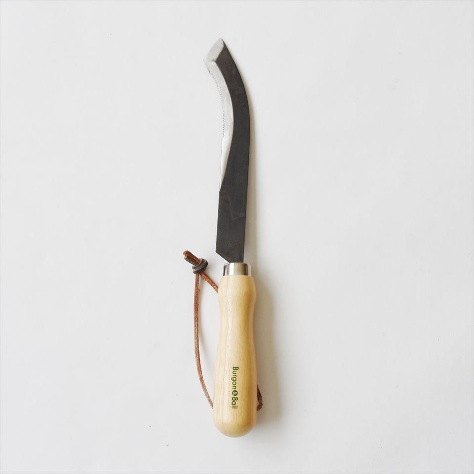 切れ味鋭い鍛造のカーボンスチールのアスパラガスナイフ。地際から15センチほどに育ったアスパラガスを、サイドの刃でスライスして切り目を入れ、先端のフラットな刃で切り取ります。バーゴン&ボールオリジナルのレシピブック付き(22ページ英語)。