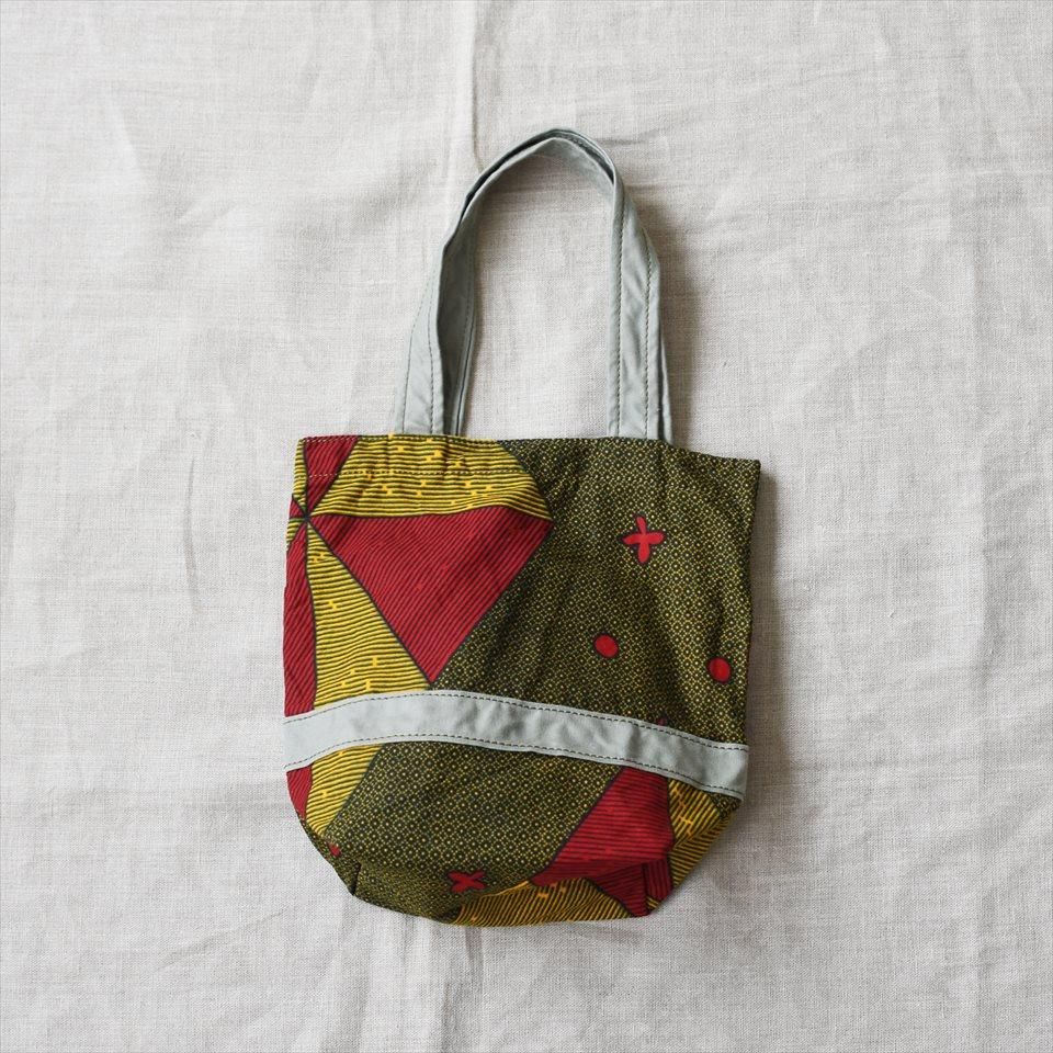西アフリカの生地を使用したサーフスタイルのバッグ。一枚布ではなく、内布付きのミニトート。