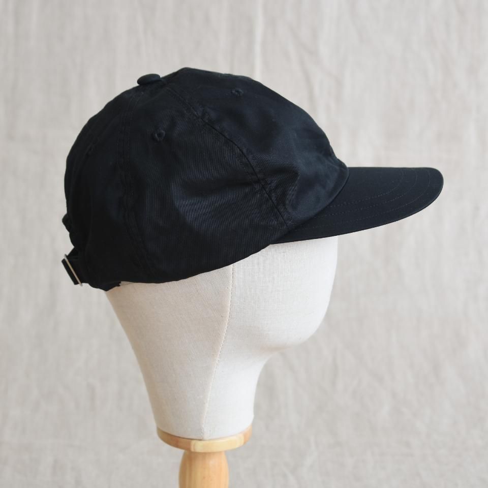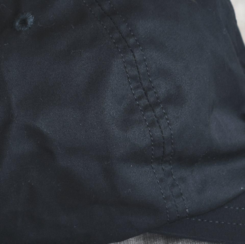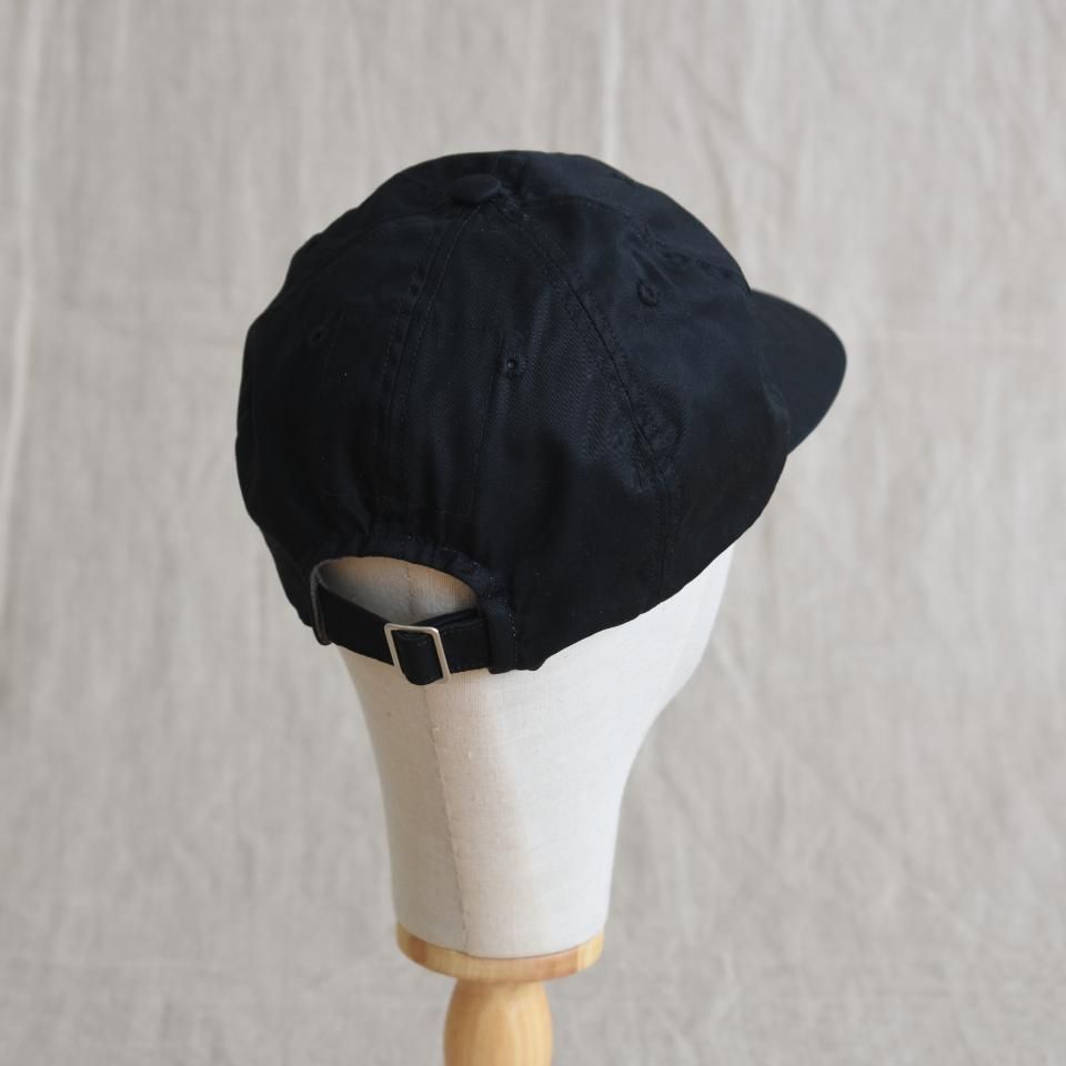 やや深めで丸みのあるシンプルなボールキャップ。後頭部に後部のバックルでサイズ調整が可能です。