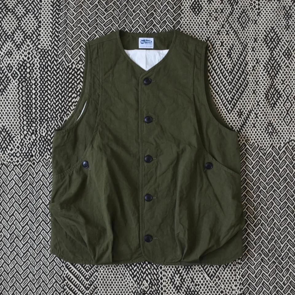 カンガルーとバッグを掛け合わせたイメージで生まれた、BAGGAROO(バッガルー)。ベストとしてはもちろんのこと、ノースリーブのブルゾンを想定した一着。後ろはボタン仕様の尾錠。シャツやジャケットに合わせるベストとしてはもちろん、Tシャツやスウェットにサラッと羽織るように着ても様になる一着です。また、幅広く様々な色に合わせやすい色味です。