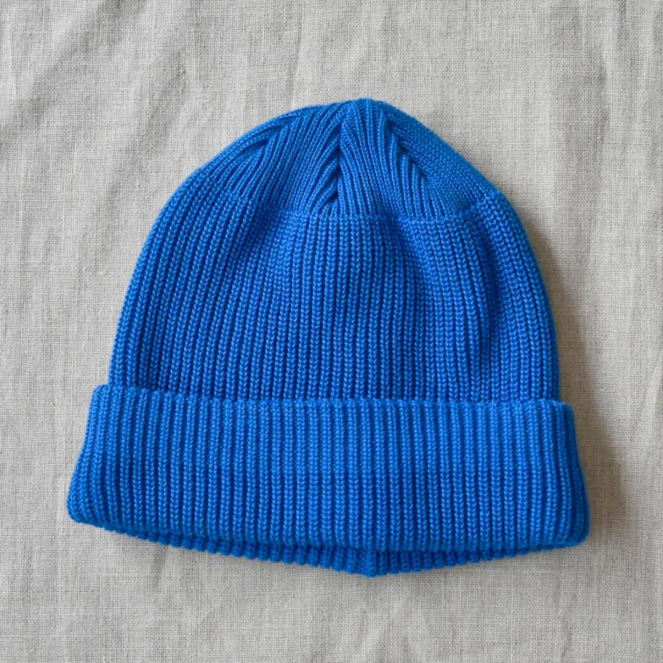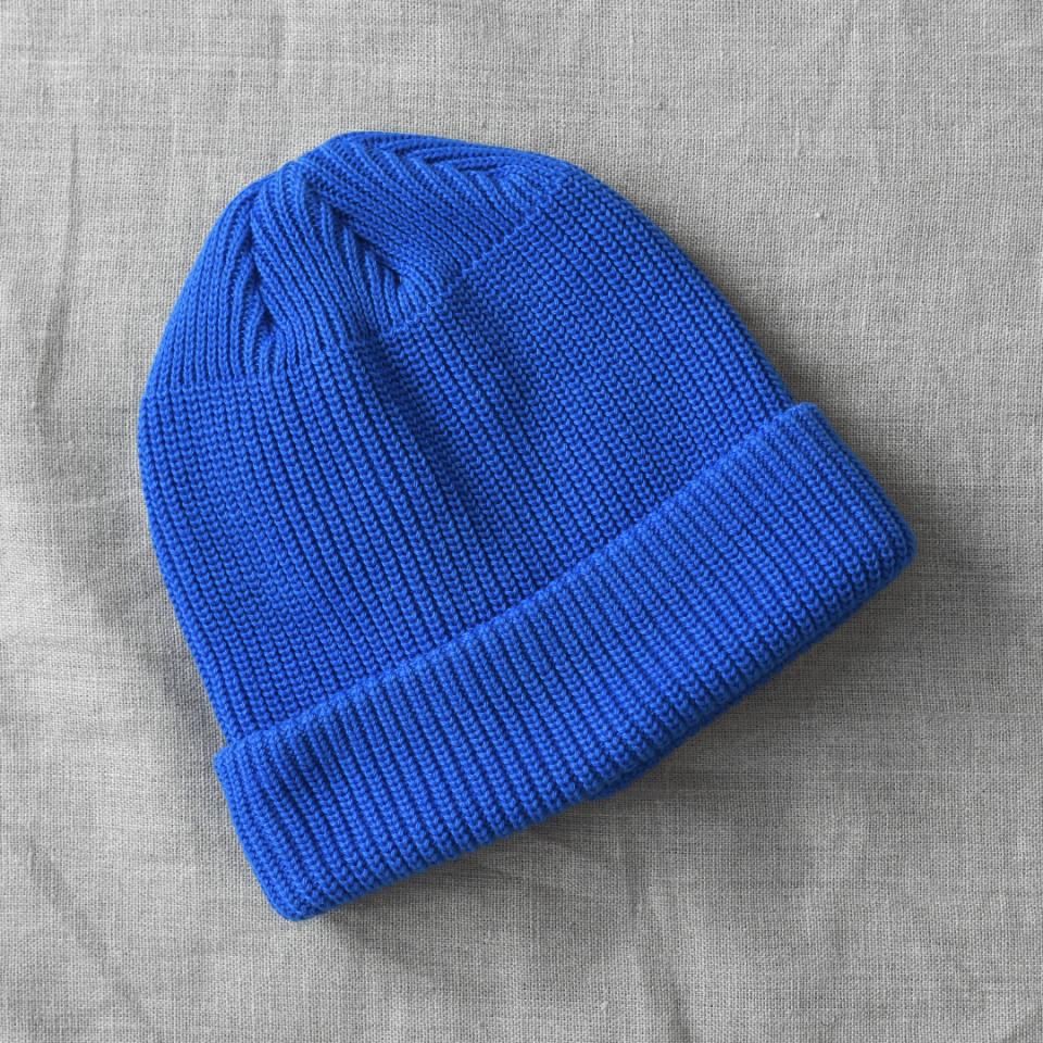 オールシーン対応のコットン100%のニット帽。アクリルよりも柔らかで、ウールより肌触りが滑らかです。汗をかいても丸洗いできます。程よいボリューム感があり、眉毛の上と後頭部まで深くかぶると耳まで覆い隠せて暖かく、生え際あたりから浅めにかぶる頭頂部に余らせる遊びのある雰囲気になります。サイドを二回折り返して浅めにかぶるアレンジもおすすめです。