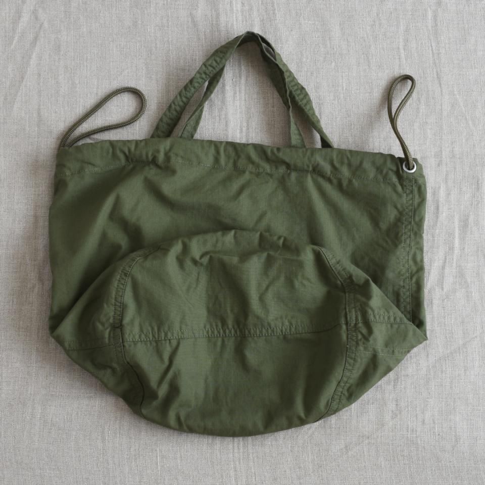 U.S.ARMYの兵士たちが貴重品や洗面具等を含めた私物を入れ使用していた”ペイシェント・エフェクツ・バッグ”(ホスピタルパーソナルバッグ)を現代にアレンジして制作されているバッグ。発売当初から評判がよく、ブランド定番の一つとなりました。丸っこい形が可愛らしい巾着式バッグ。リップストップ生地を使用し、カーゴパンツのポケットをフロントに配置した13Lサイズは、デイリーバッグとしてお使いいただけるほか、旅行時のバッグインバッグとしてなど様々なシーンでお使いいただけます。