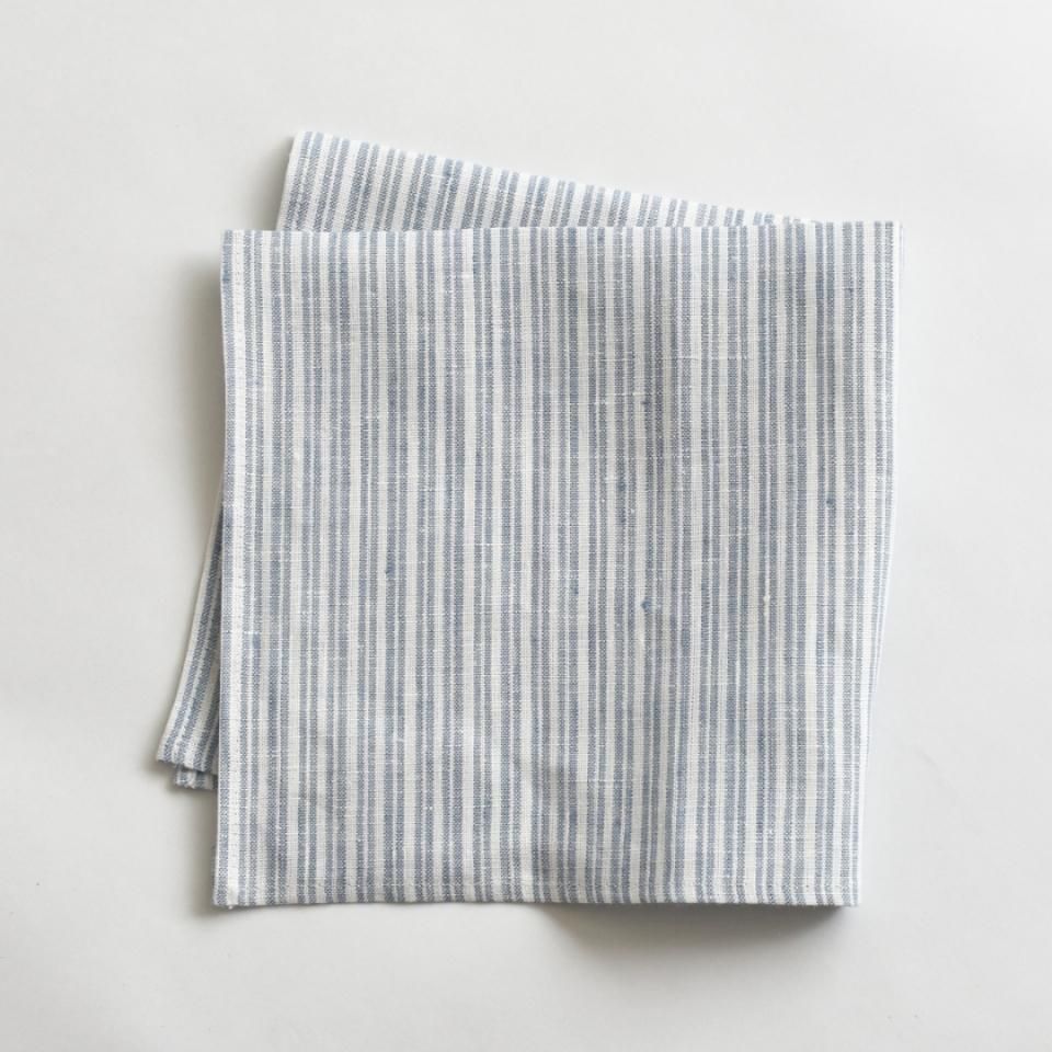 Fog Linen Work(フォグリネンワーク)リネンナプキン(普通地)ホワイト/ブルーストライプ 45x45cm