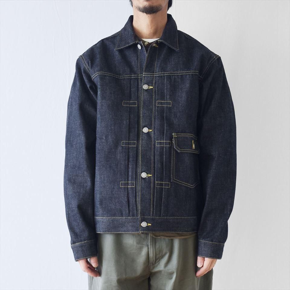 ボックス型のヴィンテージのGジャンがデザインソースのショート丈デニムジャケット。左綾14オンス・デニム。