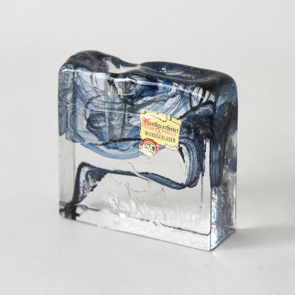 ドイツの伝統的なガラス工芸品の一種、Marsberger glas(マルスベルガー・グラス)。ヨーロッパのミッドセンチュリーを代表的するガラスの一輪挿し、通称「Solifleur」(ソリフルール)。マーブルが美しく特徴的で、Hanbgearbeitet MUNDGEBLASEN(「手作業で製作された吹きガラス」の意味)のシールが残っています。