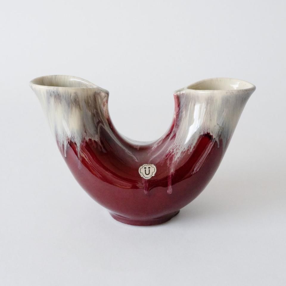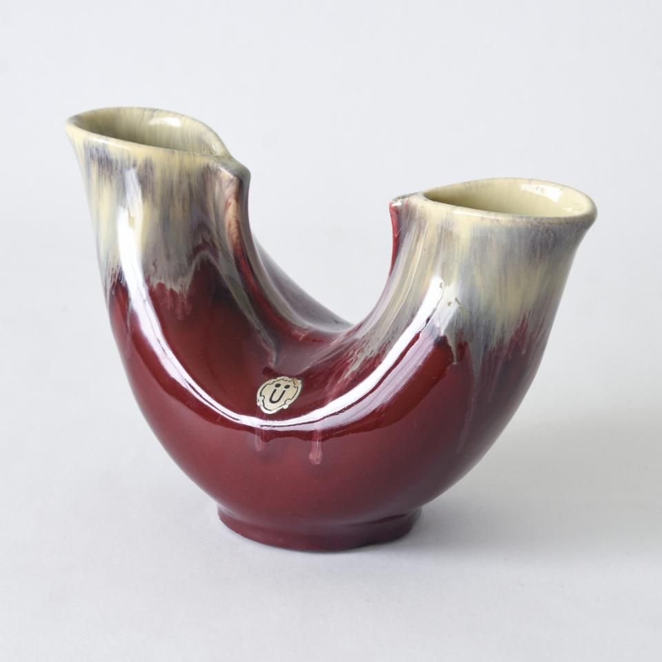 旧西ドイツ時代の1950年代に制作された、Übelacker Keramik(ユーベラッカー・ケラミック)製のフラワーベース。。ウツボカズラ(ネペンテス)のような口や、ブランドロゴの「Ü」を彷彿させるデザインが魅力的。色味のグラデーションも芸術的な一品。