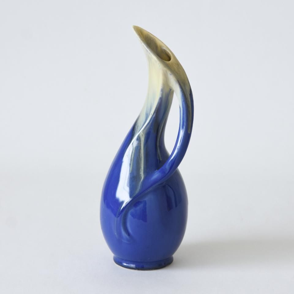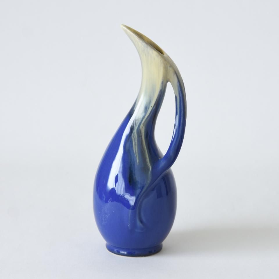 旧西ドイツ時代の1950年代に制作された、Übelacker Keramik(ユーベラッカー・ケラミック)製のフラワーベース。螺旋形の持ち手が特徴的で、鳥のくちばしのような口、猫の尻尾のような持ち手の流れが特徴的。色味のグラデーションも芸術的な一品。