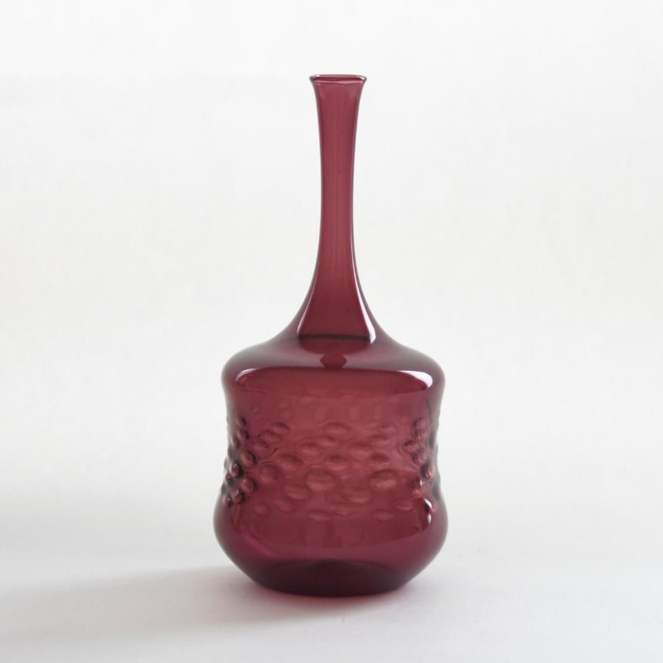 1960年から1970年代に、ガラス産業が盛んなテューリンゲン州ラウシャで吹きガラス職人によってつくられた薄く繊細なガラス花瓶。流線的、近未来的なフォルムに当時流行したスペースエイジデザインを垣間見ることができます。