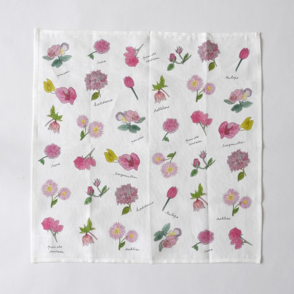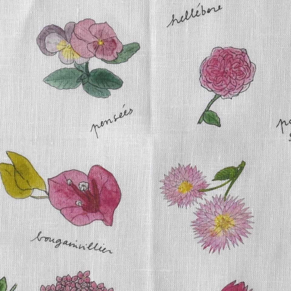 フランスのアーティスト、イザベル・ボワノが描く季節の花々を、リネン生地にプリントしたハンカチ。