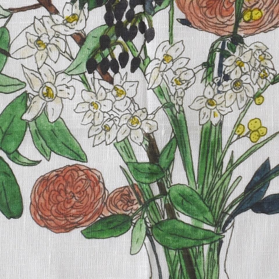 フランスのアーティスト、イザベル・ボワノが描く季節の花々を、Fog Linen Work(フォグリネンワーク)のリネン生地にプリントしたハンカチ。やさしいタッチの花々が、日常に自然のぬくもりを届けてくれます。洋服のポケットやバッグに忍ばせたり、お弁当を包むのはもちろん、額装してアートとして飾るのも素敵です。「植物のある暮らし」を、いつもとは違う視点で楽しめて、ギフトにも喜ばれる、特別な一枚です。