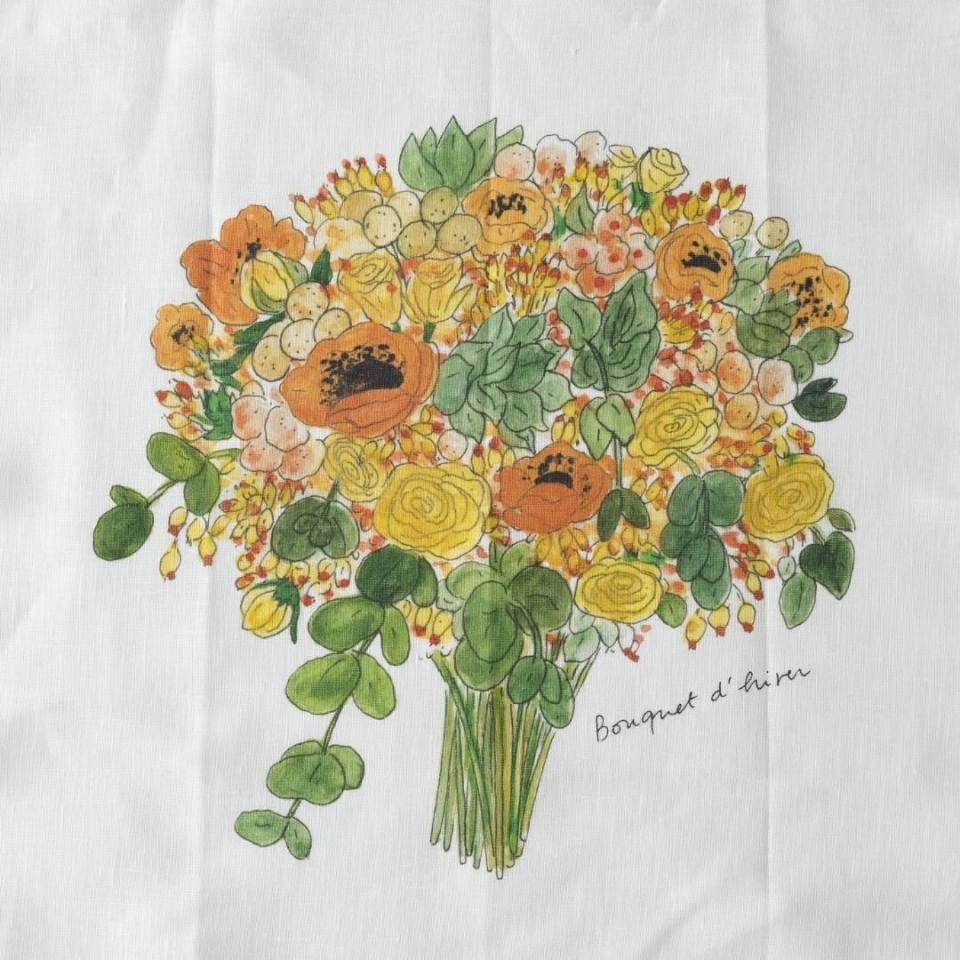 フランスのアーティスト、イザベル・ボワノが描く季節の花々を、リネン生地にプリントしたハンカチ。ミニサイズ。