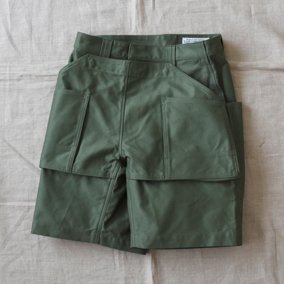 フロントの大容量ポケットを中心に、 道具の収納を想定したポケットデザインが特徴のTOOLBOX PANTS。 パリ市内にある SQUAT [ paris 59 rivoli ]をアトリエとするアーティスト達(squaters)のライフワークにフォーカスし製作したセネリエ発足からの基盤となるパンツです。