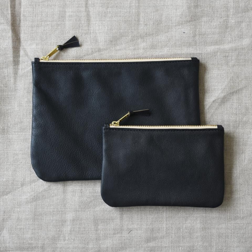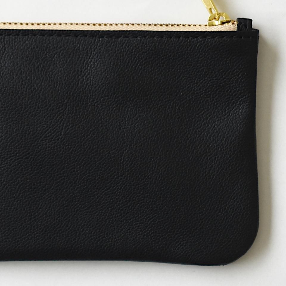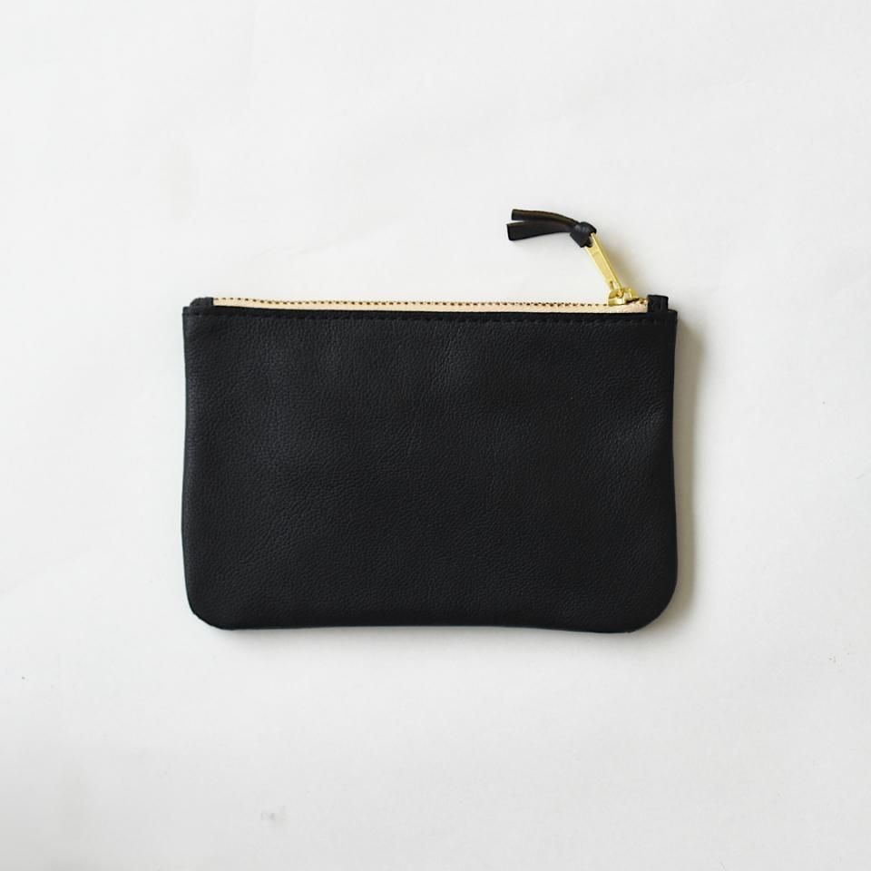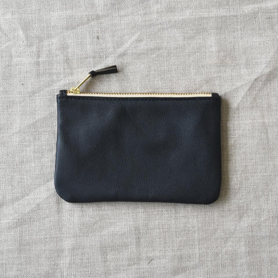 牛革を使ったフラットなレザーポーチ。お値段以上の上質で柔らかなレザー。はがきサイズ(15x10cm)。