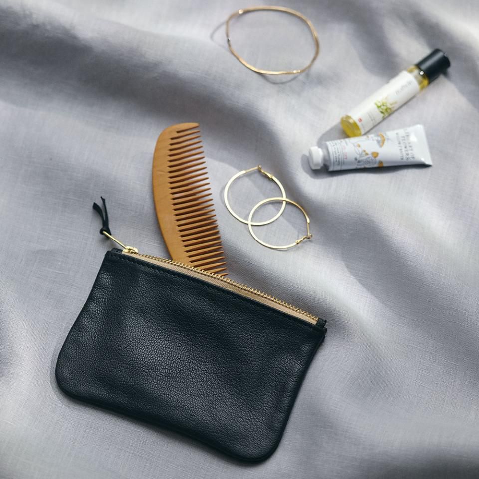イヤホン、充電ケーブル、ホテルのカードキーなど、バッグの中で迷子になりがちな小物をまとめて。