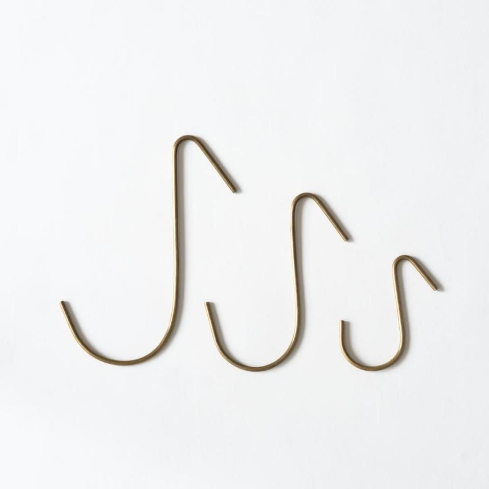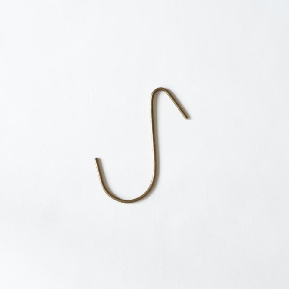 暮らしの様々なシーンで役立つS字フック。上下でカーブの形が異なるので、使う場所や引っかけるものによって、フックの向きを変えて使うことができます。艶のない、少しくすんだブラスの自然な色と質感です。