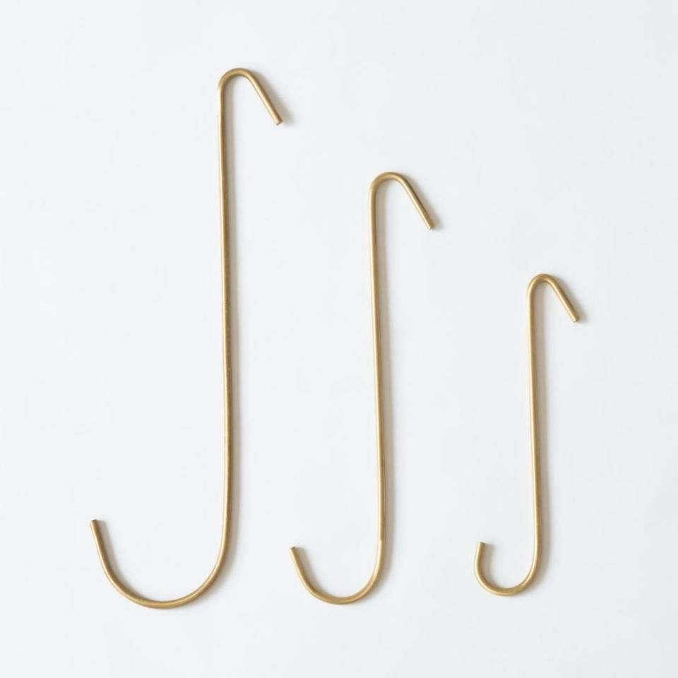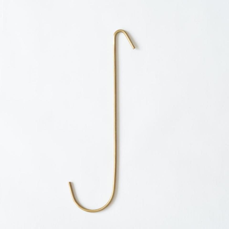 暮らしの様々なシーンで役立つS字フック。ロングタイプ。上下でカーブの形が異なるので、使う場所や引っかけるものによって、フックの向きを変えて使うことができます。艶のない、少しくすんだブラスの自然な色と質感です。