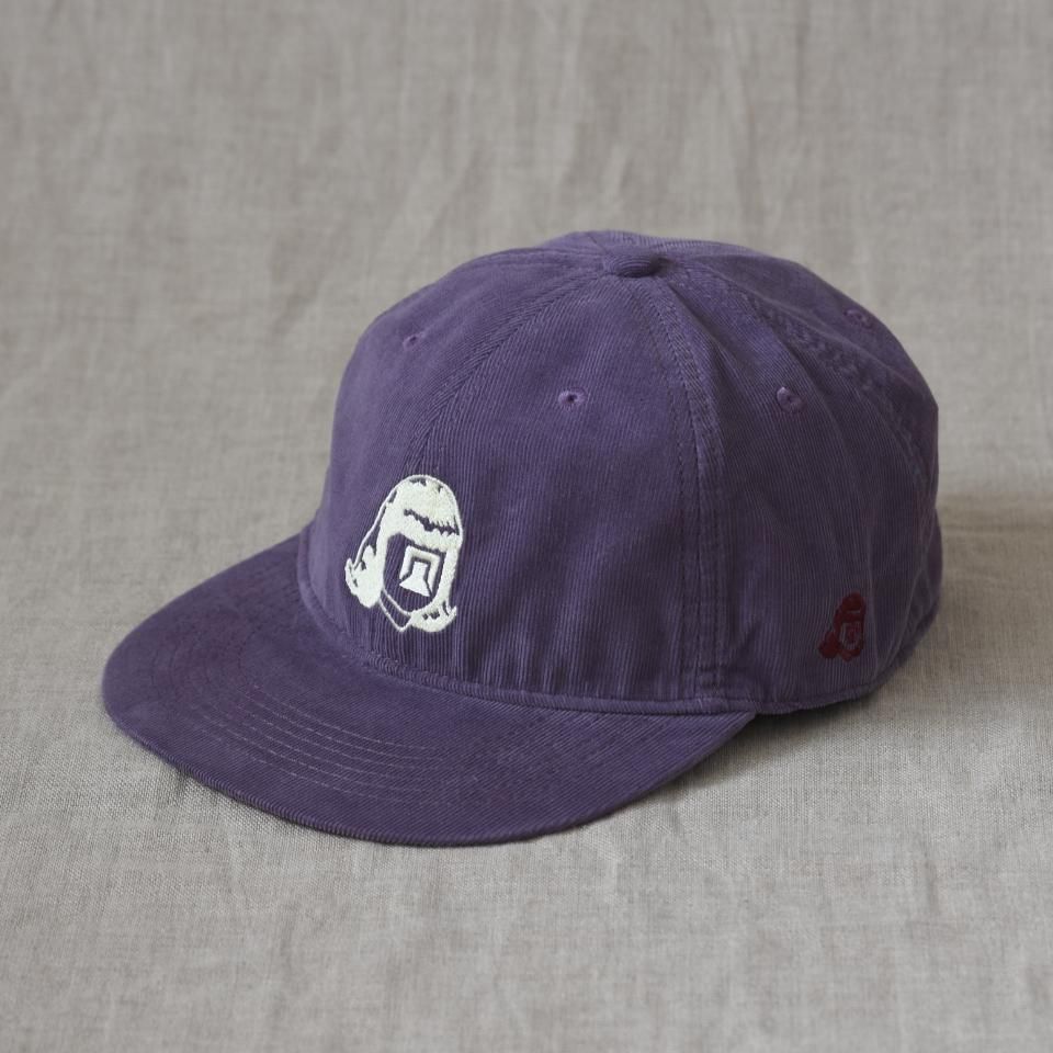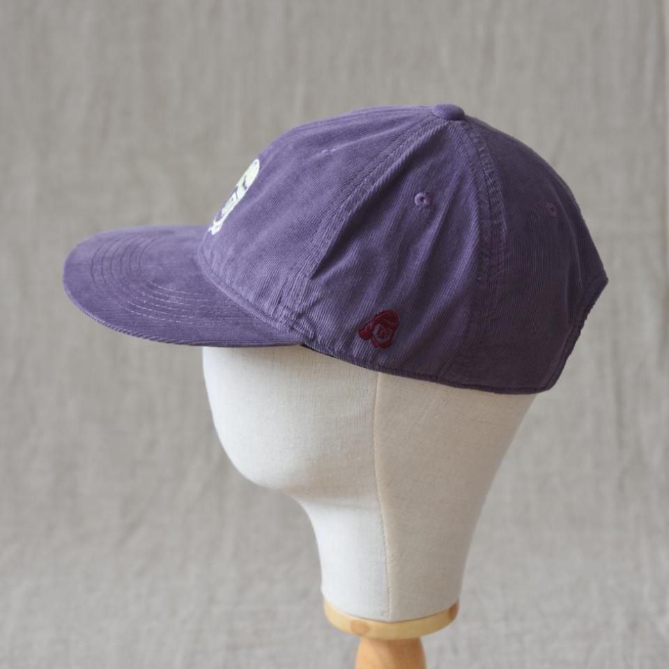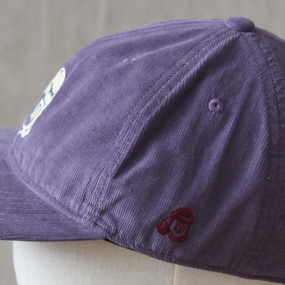 綿100%細畝コーデュロイの6パネルのロゴキャップ。サマーコール程度の細畝(ほそうね)で薄手に織られたコーデュロイ生地です。