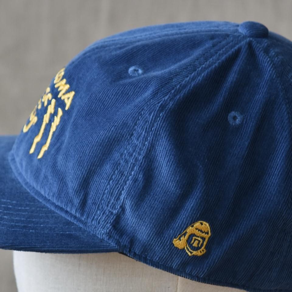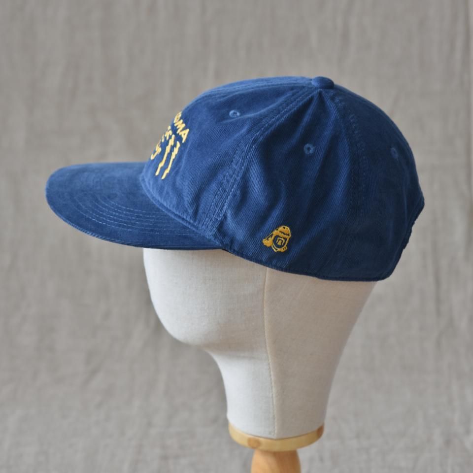綿100%細畝コーデュロイの6パネルのキャップ。サマーコール程度の細畝(ほそうね)で薄手に織られたコーデュロイ生地です。