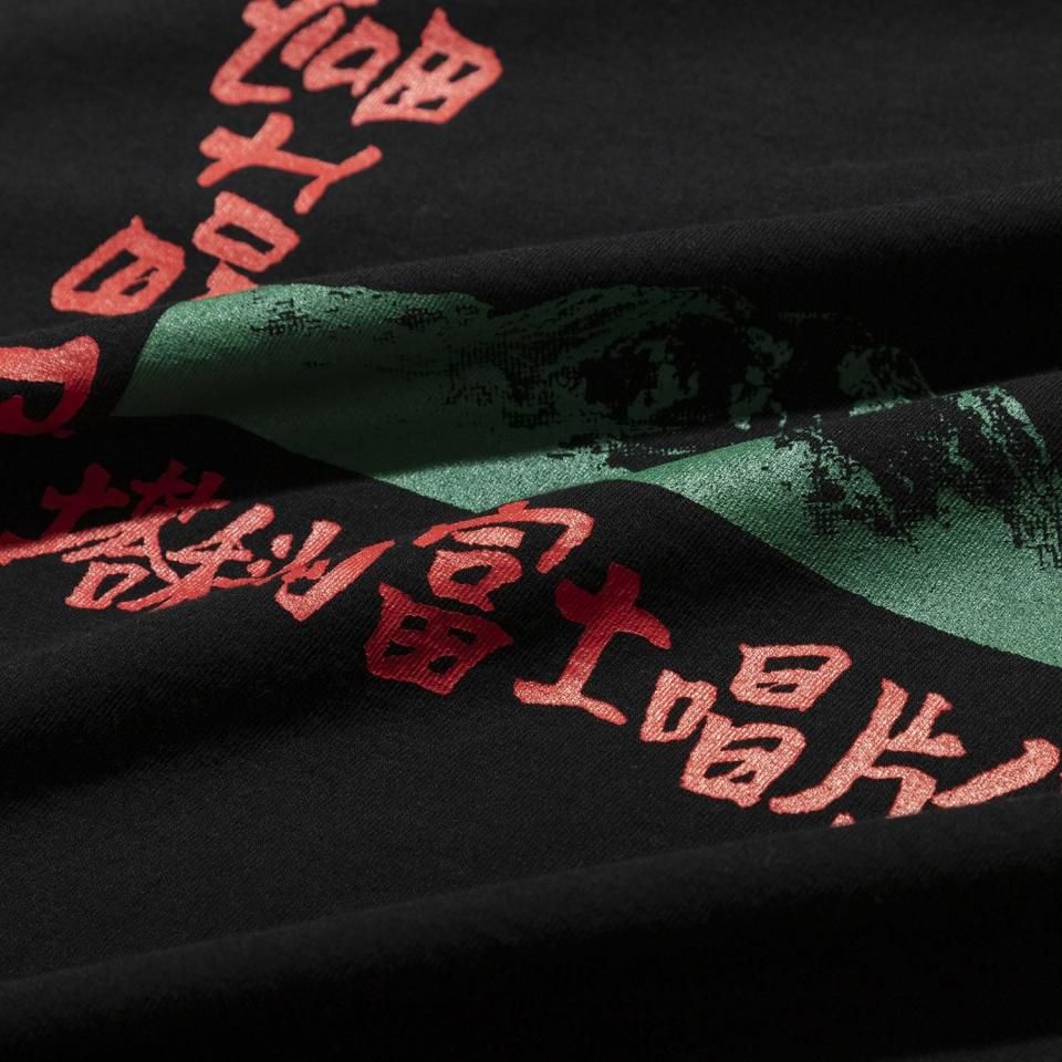 1960年代、カウンターカルチャーの中心地であったサンフランシスコで、ミュージックシーンの変節と成長の重要な役割を果たしたライブハウス「フィルモア」。フィルモア・オーデトリアムから始まり、フィルモア・ウェストとNYのフィルモア・イーストへと発展。数多くの名作と言われるライブ音源を収録したことでも有名だ。同時に、後進のアーティストに多大な影響を与えたのが膨大な数のライブ告知ポスター。モダニズムと幻覚体験を具現化したサイケデリック・アートの融合と呼ばれた革新的なアートポスターをイベント毎に作成、希望する来場者には無料で配布していた。現存する当時のポスターはコレクターの間では高値で取引されている。そんなコレクターの1人が元IRREPARABLE ACTSのヒロヒサヨコヤマ。このTシャツは、実際にフィルモア・イーストでライブ演奏した経験を持つヨコヤマが所持していた、1970前後にヨコヤマ自身がデザインした幻の未公開ポスターアート。「デザイン中の漢字の意味が分からない」との理由で当時採用されなかったが故に奇跡的な保存状態で発見、今回Tシャツ化されることとなった。