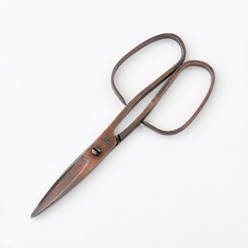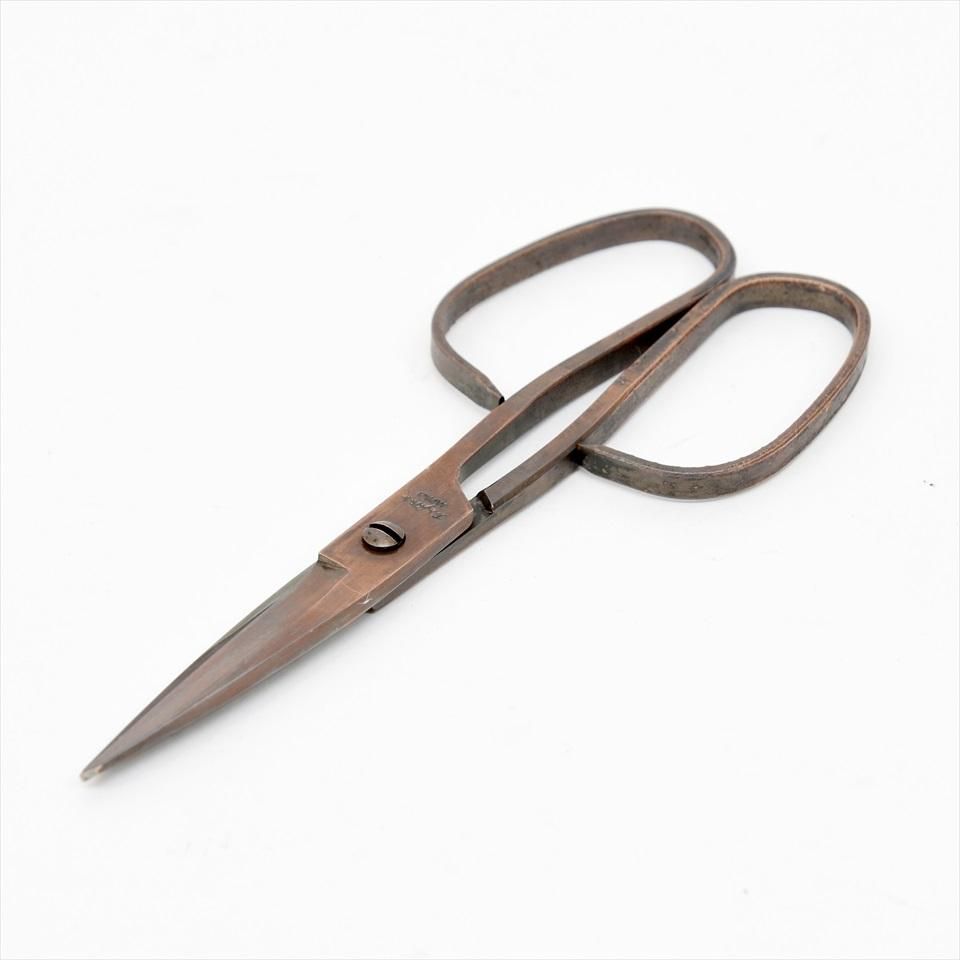 この鋏は、鋼の上に銅メッキを施し、銅を特殊な加工によって仕上げた色と裁鋏の技術を用いた裏すきが特徴です。裏すきにより切れ味が持続しironと同様に手研ぎをすることで、銅の風合いを残し、切れ味を高めています。ステーショナリーとしてお使い頂けるよう製造しておりますが、元は工場作業用にも使われるプロ用の鋏です。布も切れるように仕上げていますので、裁縫にもご使用頂けます。