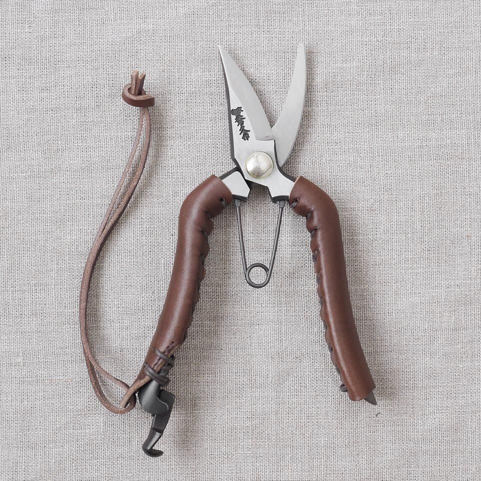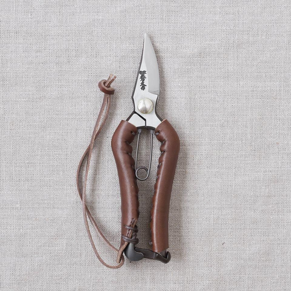 信頼と敬意を込めて四代目秀久作の刻印をそのまま使わせていただいています。すでにある良いものには抗わず、そのまま活用させていただくことも大切なこと。万能剪定鋏は一般的な剪定鋏よりも細かな作業がしやすいように刃を細くした形状。特にバラやフローリスト向きで、一本である程度すべての作業をしたい方におすすめ。ガーデニングもしたいしアレンジにも使いたいし、枝も切りたいし、庭先の草花の芽摘みもしたい、という要望を叶えてくれる文字通り万能な剪定鋏です。末永くお使いいただけると嬉しい限りです。