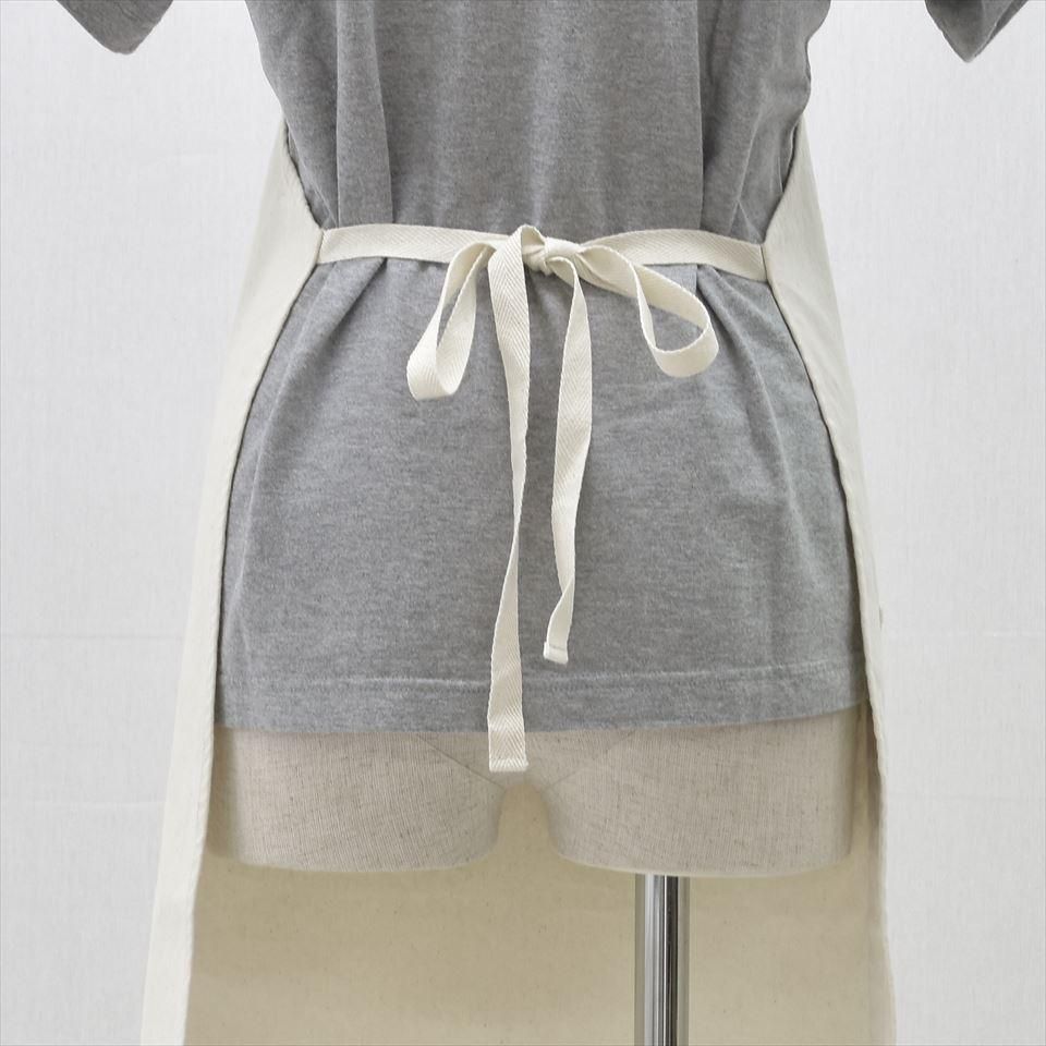 4つのポケットが特徴的な膝丈フルエプロン。ルーラー(定規)ポケットが特長的なタイプ。キャンバス生地は分厚すぎず薄すぎずで、気軽に使えてかつ丈夫な生地。身幅が狭いので、膝が引っかかることもなく良く動きやすく、座った状態でも太腿の上で衣類を汚さず作業ができる長めの丈。シンプルなので多用途でお使いいただけます。