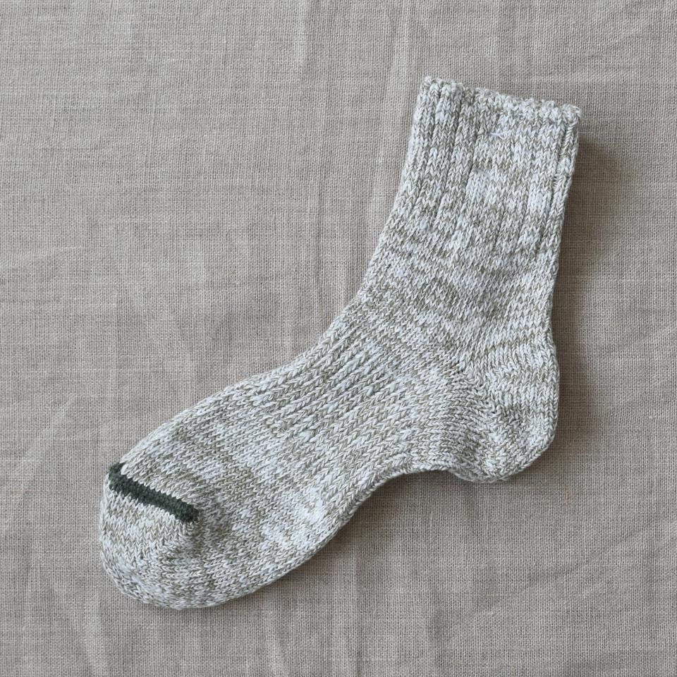 吸湿性と速乾性に富むコットン/ヘンプの靴下。明治から続く工場で丁寧に少量生産。ショート丈。