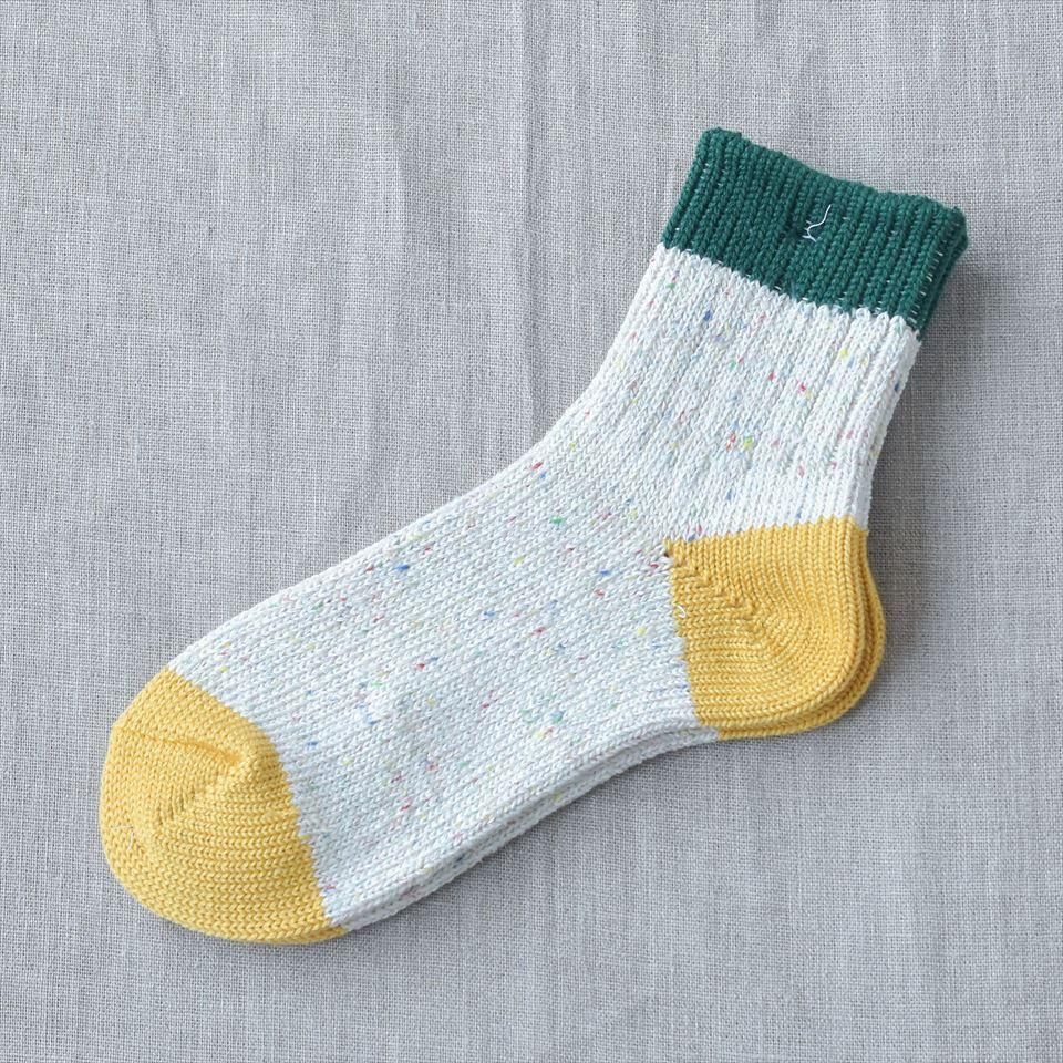 ヘンプ麻混合の太めの糸で編み込まれた肉厚のソックス。丈夫で蒸れにくく、締めつけすぎずズレにくいので長時間履いていても疲れにくい靴下。ブーツやスニーカー、サンダルなど靴を選ばず合わせやすいデザインです。長く履いても穴が開きにくい耐久性があり、アウトドアや作業用靴下として最適。オールシーズン対応の履き心地も良い靴下です。