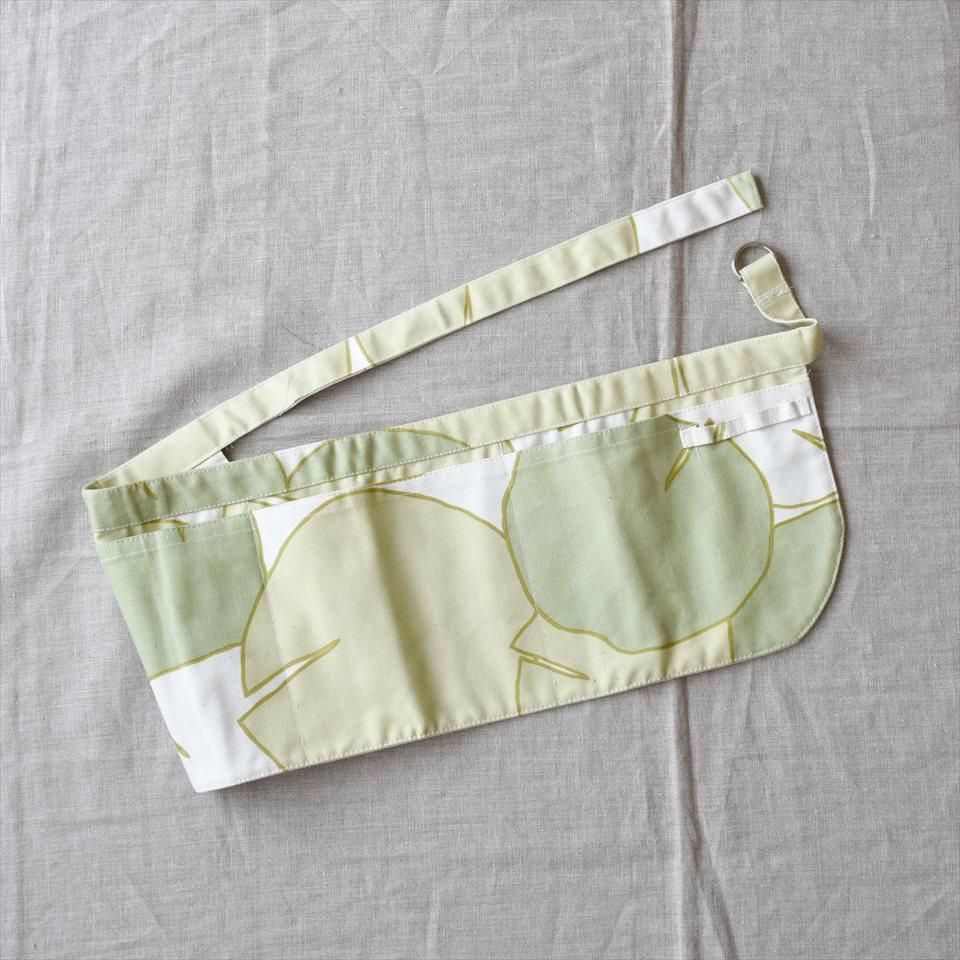 ニューイングランド地方の伝統的なスクリーン印刷技法によるアートワーク。大き目の3つのポケットと、両サイドにフックの付いたガーデンベルト。可愛らしく、北欧デザインやポップアートが好きな方にも好まれる柄です。