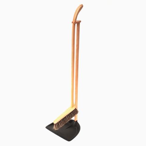 自然素材を活かした木製(ブナ)のブラシちりとりセット。チリトリ部分はプラスチックで、軽量で力の弱い方でも手軽に扱えます。使わない時はブラシをちり取り柄に引っ掻けて収納できます。見た目にも美しいので、仕舞わずに出しっぱなしでも絵になります。馬毛は床を傷めず、細かな埃もしっかり履けるので機能的にも優れたブラシです。組み立て式。