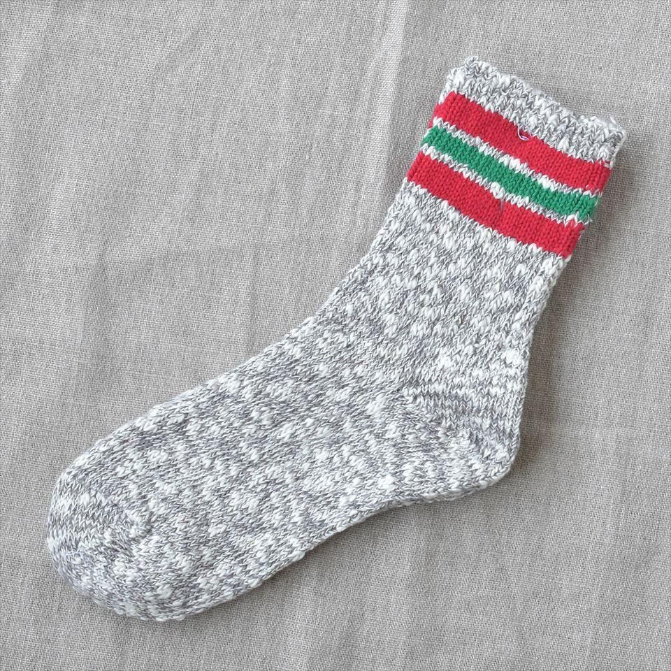 ヘンプ麻混合の太めの糸で編み込まれた肉厚のソックス。丈夫で蒸れにくく、締めつけすぎずズレにくいので長時間履いていても疲れにくい靴下。ブーツやスニーカー、サンダルなど靴を選ばず合わせやすいデザインです。長く履いても穴が開きにくい耐久性があり、アウトドアや作業用靴下として最適。オールシーズン対応の履き心地も良い靴下です。
