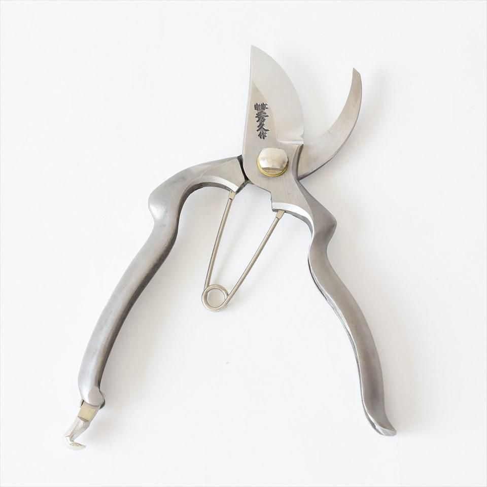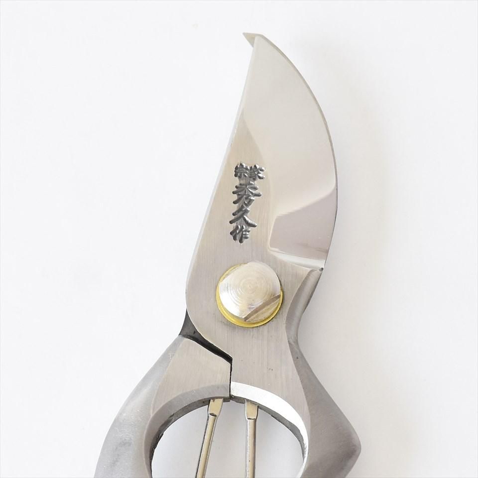外山刃物の創業は、江戸時代の文久年間にさかのぼり、越後木鋏の宗家として、初代龍松氏(銘:龍松)、二代目富次郎氏(銘:珍龍)、三代目秀吉氏(銘:龍山)、四代目秀久氏(銘:秀久)が、金物の街三条で代々受け継がれてきた植木鋏メーカーです。木鋏の製造は、鍛造、上げ打ち、焼き入れ、焼戻し、表すり、色付け、裏刃と切刃の重研削と仕上げ研磨、組立、調整(合い刃どり)をはじめとして、いくつもの工程を経てなされます。その工程ごとに鋼(ハガネ)を知り尽くした匠の技で作られています。また、新しい技術を取り入れ、現在もっともプロの園芸家に信頼される鋏メーカーの一つとして、「宗家秀久作」の刻印の鋏は愛用されています。